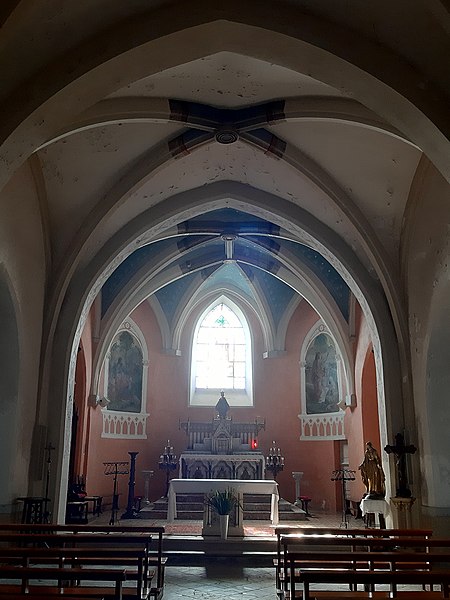 Le mobilier paroissial rassemble de nombreux éléments : un monument aux morts de la Première Guerre mondiale accompagné d'une pietà, un maître-autel et des autels secondaires dédiés à la Vierge et à saint Joseph, un retable et une sculpture représentant le Baptême du Christ, ainsi que fonts baptismaux et confessionnal. On y trouve aussi un fauteuil de célébrant, une bannière de procession, une clôture de monument funéraire, un chemin de croix, des statues (dont une Vierge dorée et un saint Louis dans le narthex), un Christ en croix et diverses peintures et tableaux, notamment Jésus bénissant les enfants, Jésus prêchant, la Résurrection de Lazare et saint Michel terrassant le Démon.