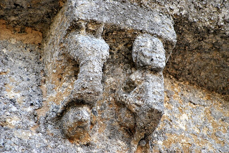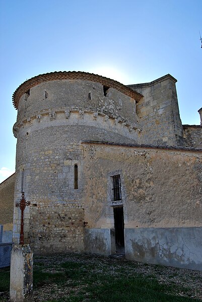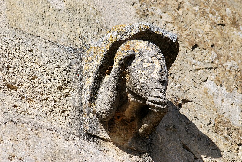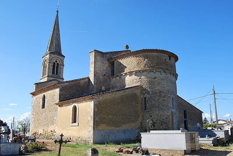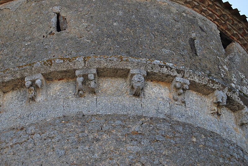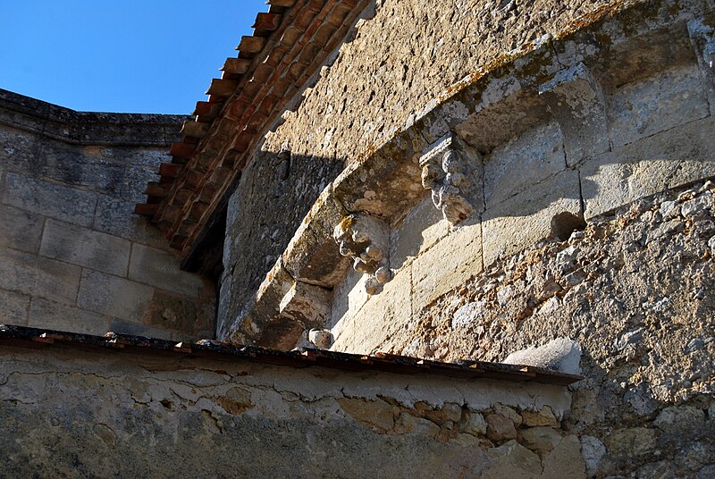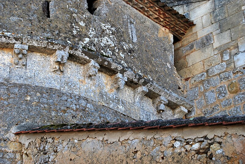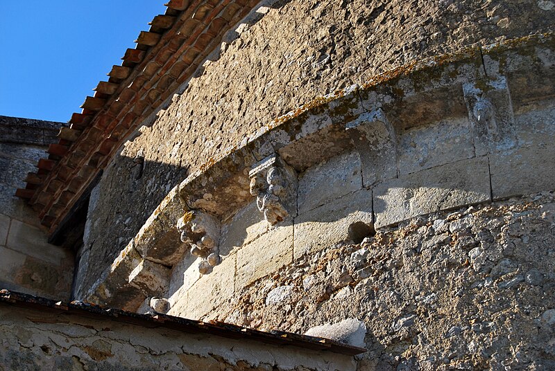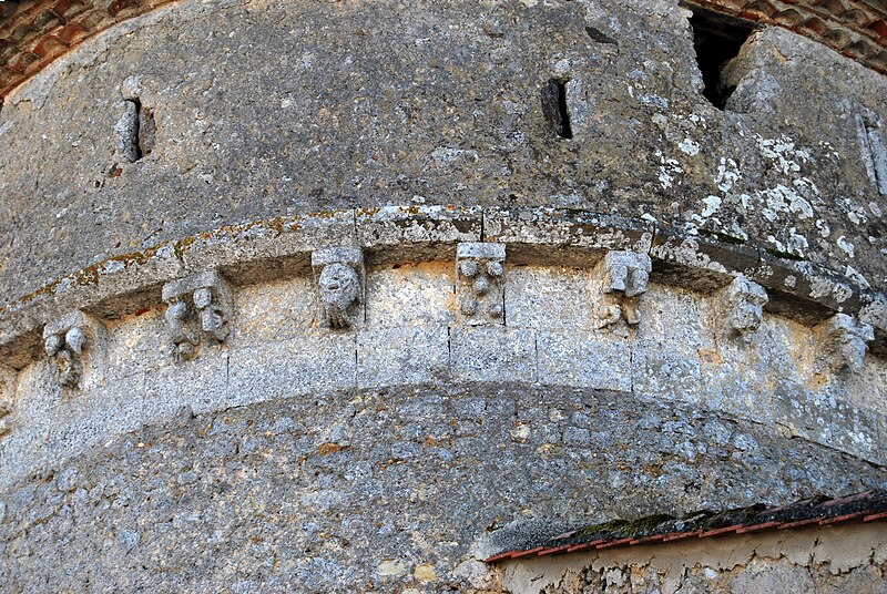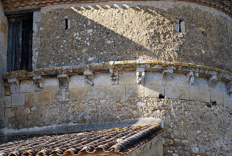 Seule l’abside a conservé sa sculpture romane : à l’extérieur, quatorze modillons sculptés soutiennent la corniche et proposent un répertoire moraliste classique ; à l’intérieur, deux chapiteaux historiés supportent l’arc triomphal et ont été inscrits à l’inventaire général du patrimoine culturel le 14 octobre 1997. Les modillons du chevet représentent animaux (taureau, cochon, bouc, ours) et scènes symboliques qui dénoncent les péchés : une Eucharistie dite « sacrilège » montrant deux personnages consommant une hostie et du vin, des coquilles de pèlerinage, des figures liées à la musique profane, un homme ithyphallique, un couple enlacé et la figure dite de l’homme « inverti » évoquant la sodomie. Sur le mur sud de la nef subsiste un modillon de remploi représentant le buste d’un homme dont la main droite touche ses cheveux et la main gauche caresse sa barbe ; ces gestes ont été interprétés comme des signes de vanité et de connotation sexuelle. Léo Drouyn a relevé trois modillons qualifiés « d’obscènes » : un homme caressant une femme, un homme accroupi exhibant son sexe et un autre présentant ses fesses.