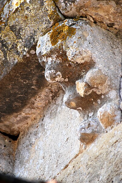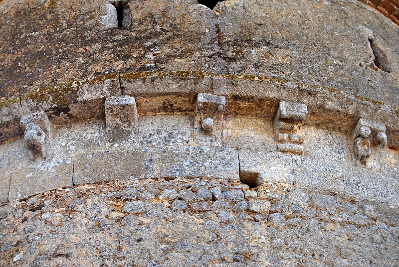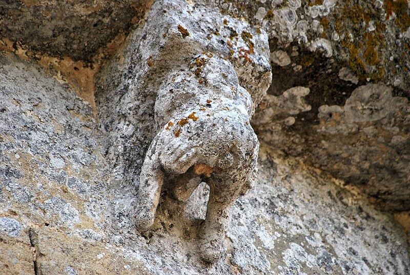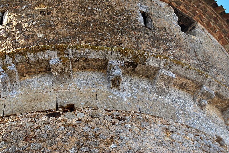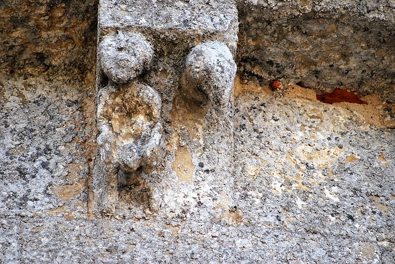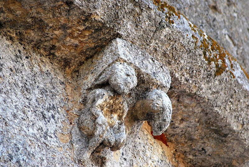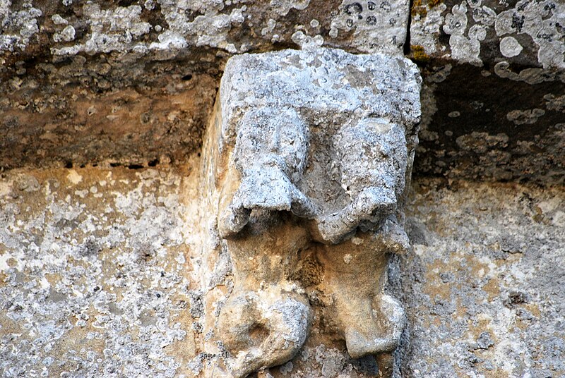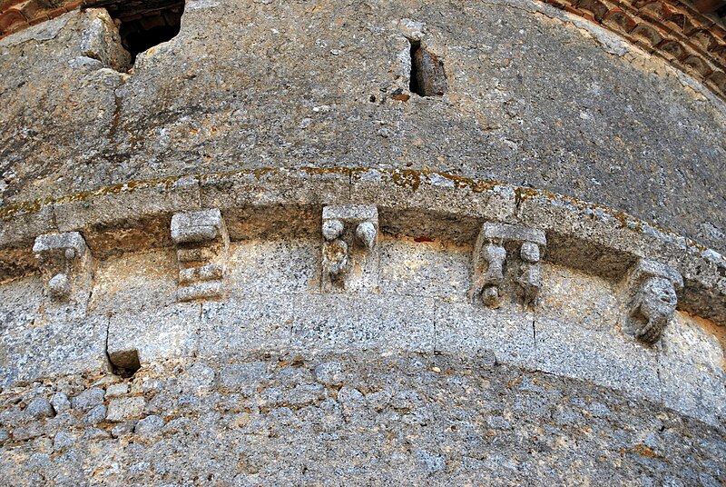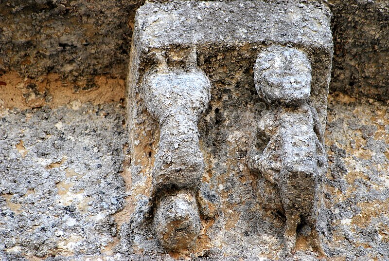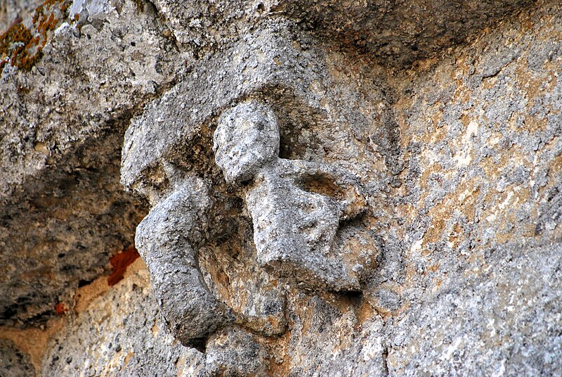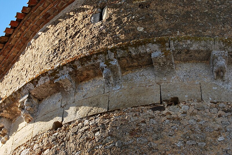 Seule l’abside a conservé sa sculpture romane : à l’extérieur, quatorze modillons sculptés soutiennent la corniche et proposent un répertoire moraliste classique ; à l’intérieur, deux chapiteaux historiés supportent l’arc triomphal et ont été inscrits à l’inventaire général du patrimoine culturel le 14 octobre 1997. Les modillons du chevet représentent animaux (taureau, cochon, bouc, ours) et scènes symboliques qui dénoncent les péchés : une Eucharistie dite « sacrilège » montrant deux personnages consommant une hostie et du vin, des coquilles de pèlerinage, des figures liées à la musique profane, un homme ithyphallique, un couple enlacé et la figure dite de l’homme « inverti » évoquant la sodomie. Sur le mur sud de la nef subsiste un modillon de remploi représentant le buste d’un homme dont la main droite touche ses cheveux et la main gauche caresse sa barbe ; ces gestes ont été interprétés comme des signes de vanité et de connotation sexuelle. Léo Drouyn a relevé trois modillons qualifiés « d’obscènes » : un homme caressant une femme, un homme accroupi exhibant son sexe et un autre présentant ses fesses.