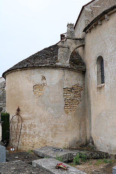 De l'ancienne chapelle castrale du XIIe siècle subsistent la crypte, le chœur, les absidioles du chevet et la tour du clocher. Devenue église paroissiale au milieu du XVe siècle, elle aurait été agrandie puis consacrée en 1453. Au XIXe siècle, la fabrique entreprend plusieurs campagnes de travaux : réparations de la crypte en 1866, restauration du clocher en 1869, puis travaux de maçonnerie, charpente et couverture en 1873, comprenant notamment la voûte d'arêtes sous le clocher. Entre 1874 et 1879, sous la direction du curé Simon, l'édifice est profondément transformé : on construit des voûtes de brique et des arcs doubleaux, on cloisonne le bas-côté sud — l'ancienne chapelle Sainte-Pélagie — et on crée trois chapelles. Par ailleurs, des arcades et des fenêtres sont percées ou agrandies pour uniformiser les ouvertures, une sacristie est ajoutée, une tourelle est édifiée pour l'escalier du clocher et un escalier intérieur permet l'accès à la crypte. La porte latérale est déplacée dans l'absidiole nord depuis la travée sous le clocher. Une flèche octogonale est construite sur la tour du clocher en 1887.