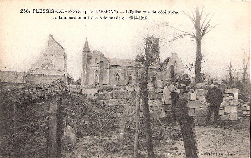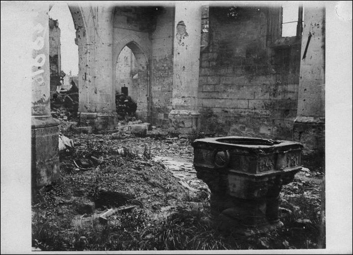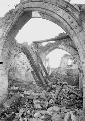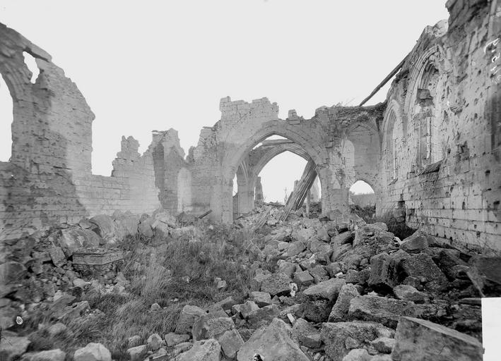 Détruite presqu'entièrement pendant la Première Guerre mondiale, l'église a été reconstruite par l'architecte André Collin entre 1930 et 1932. La nef a été volontairement laissée inachevée pour conserver la mémoire du conflit et lui conférer l'aspect d'un cloître. L'aspect d'origine de l'édifice a été globalement respecté, à l'exception du clocher qui, plus imposant que celui d'origine, déstabilise aujourd'hui la structure.