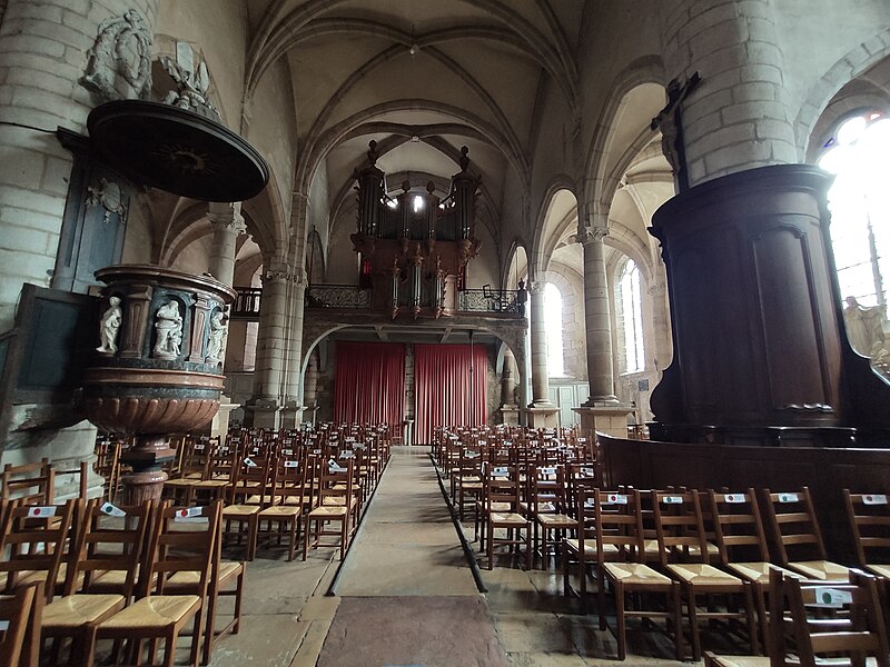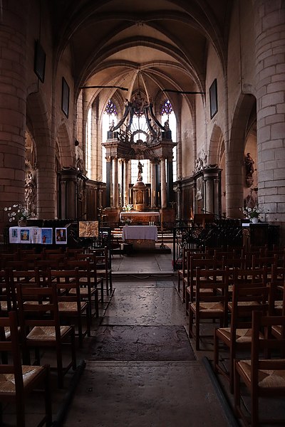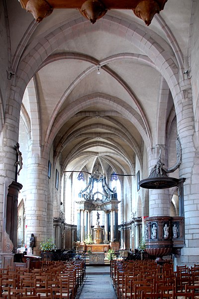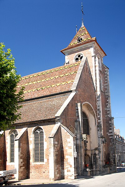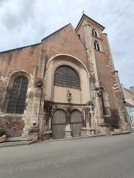 L'église Saint-Jean-Baptiste de Saint-Jean-de-Losne (Côte-d'Or, Bourgogne-Franche-Comté) est consacrée à saint Jean‑Baptiste et classée monument historique depuis le 8 avril 1921. L'existence d'une première église est connue dès 1095 et son patronage fut donné à l'abbaye Saint-Bénigne de Dijon en 1102. L'édifice actuel, bâti en pierre calcaire et en brique à l'emplacement d'une église partiellement détruite par l'incendie de 1362, présente des proportions ramassées qui tiennent aux contraintes topographiques de la ville autrefois enfermée dans ses fortifications et exposée aux crues de la Saône. On a longtemps considéré que la construction avait commencé vers 1430, le chœur relevant du gothique flamboyant, le transept suivant et la nef avec la façade adoptant un style de première Renaissance val-de-loire entre 1530 et 1540. Des études récentes attribuent toutefois l'ensemble au XVIe siècle, mené en plusieurs chantiers rapprochés : une phase du chœur datée vers 1509-1524 et achevée en 1534, suivie d'un contrat pour la poursuite des travaux du transept et de la nef avec le maçon Jehan Beringuet, puis de reprises en 1554 pour la voûte, le portail ayant été finalement abandonné. Ces successions d'interventions expliquent certaines maladresses dans les jonctions entre parties anciennes et plus récentes. Le chevet est, de façon inhabituelle, orienté vers l'ouest. Des aménagements ont encore eu lieu aux XVIIIe et XIXe siècles — modification de la façade, installation de l'orgue à la fin du XVIIIe siècle, réparations des contreforts des transepts — puis des restaurations à la fin du XIXe et au début du XXe siècle. La toiture est recouverte de tuiles vernissées polychromes selon la tradition bourguignonne. L'intérieur conserve un mobilier remarquable : un baldaquin de style Louis‑XVI du sculpteur Antoine Marquetty sur le maître-autel, une chaire à prêcher datée de 1604 (décrite comme en marbre de Franche‑Comté ou en pierre rouge de Sampans selon les sources) et un orgue daté de 1768, œuvre du facteur Bénigne Boillot ; la chaire et l'orgue sont inscrites aux monuments historiques. Des éléments évoquent la riche tradition fluviale de la ville, notamment une maquette de bateau ex‑voto suspendue au‑dessus de l'autel Saint‑Nicolas depuis 1826 et des volets aménagés dans le tambour d'une entrée latérale permettant de suivre les offices depuis l'extérieur. L'église, ouverte à la visite, témoigne ainsi des évolutions stylistiques entre gothique flamboyant et premières influences de la Renaissance, ainsi que de l'histoire portuaire de Saint‑Jean‑de‑Losne.