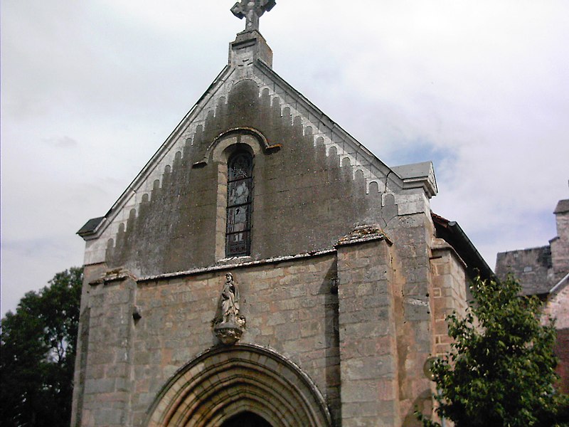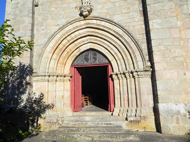 La cure dépendait de l'ancien archiprêtré de la Mayze et, établie près du château, abritait dès le XIIe siècle les sépultures des seigneurs du lieu. L'édifice présente un plan rectangulaire, composé d'une nef unique et d'un chœur plus étroit de plan carré. Une chapelle rectangulaire a été ajoutée au XVIIIe siècle sur le mur sud de la nef. Le portail occidental, de type limousin, date du XIIIe siècle ; ses quatre voussures en arc légèrement brisé sont ornées de tores formant une frise, et une archivolte moulurée avec retour d'équerre souligne leur extrados. Situé au sud-est et perpendiculaire à l'axe de l'église, le clocher-mur s'ouvre au niveau du pignon par quatre arcades en plein cintre disposées sur deux étages. À l'intérieur, sur le mur occidental, des supports en colonnes retombent sur des culots sculptés et des chapiteaux ornés. Un enfeu du XIIIe siècle a été aménagé dans le mur nord. Le chœur, refait et utilisé comme sacristie, s'ouvre sur la nef par un arc triomphal du XIIe siècle en granit rose qui retombe sur des piliers cantonnés de colonnettes à chapiteaux romans.