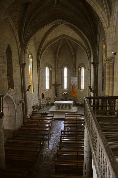 À l'intérieur, le porche nord ouvre sur un portail remarquable composé d'un arc principal trilobé et brisé encadré de deux petits arcs analogues, dispositif que l'on retrouve dans des églises de Navarre comme Santa María la Real à Olite. À gauche du portail, un petit bénitier encastré et une porte basse évoquent des usages anciens, probablement liés aux cagots. La partie la plus ancienne demeure le chœur roman dont les trois pans sont percés chacun d'une fenêtre ; les vitraux évoquent le passage des pèlerins de Saint-Jacques-de-Compostelle, le souvenir de saint Jean-Baptiste et la mémoire de l'Eucharistie. Deux grands vitraux offerts en 1893 par le maire M. Fialon et son épouse Marie représentent le martyre de saint Eugène et l'Assomption de Marie, et l'on remarque également dans le chœur un christ du XVIIIe siècle. La nef compte trois travées : la première, dans le même esprit que le chœur, est coiffée d'une voûte en pierre, la seconde est en briques pour alléger la construction. Les voûtes présentent une croisée d'ogives enfermée dans un quadrilatère de nervures formant des liernes décoratives de style flamboyant. La tribune, peut‑être du XIXe siècle, abrite au centre un tableau de la « Descente de la Croix » acquis en 1814 auprès de l'artiste Montaut d'Oloron. Pendant la Révolution française, l'église servit de prison à quinze Basques déportés pour infidélité au roi. La chaire datée de 1830 et une maquette de bateau symbolisant l'activité portuaire sur l'Adour ont disparu lors des restaurations de 1973-1977.