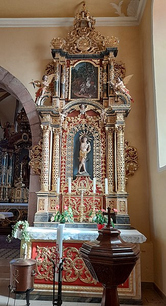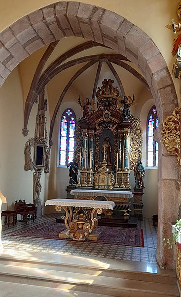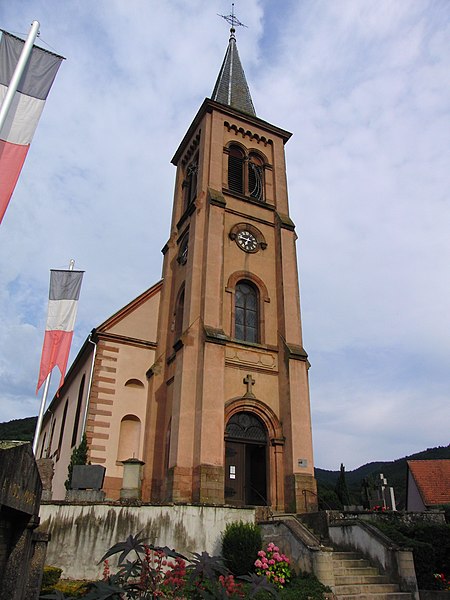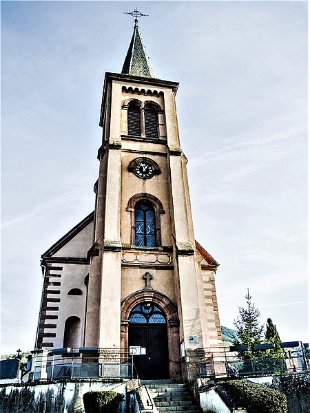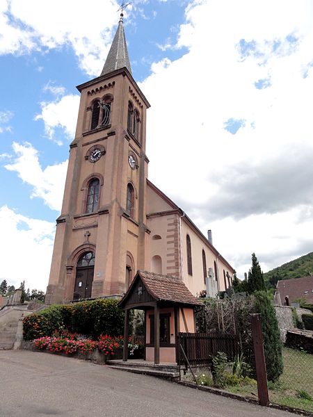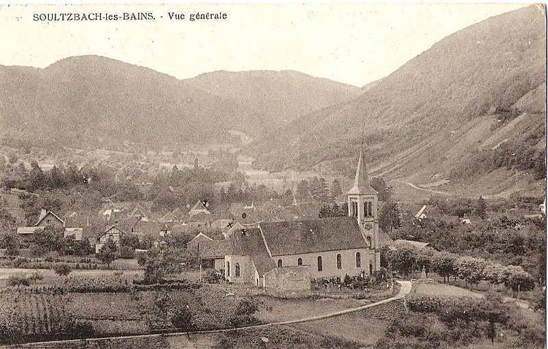 L'église catholique Saint-Jean-Baptiste, située à Soultzbach-les-Bains (Haut-Rhin), est mentionnée extra-muros à la fin du XIIIe siècle. Son chœur, la partie la plus ancienne, date probablement du XIVe siècle selon le profil des ogives de sa voûte et le dessin du remplage de ses baies. Il a été financé par la famille de Hattstatt, seigneurs du village depuis le milieu du XIIIe siècle, dont les armoiries sont sculptées dans l'abside, à la clé et sous un culot. La toiture était pourvue d'un campanile à flèche, restauré en 1760 puis supprimé vers 1900. La sacristie nord est sans doute contemporaine du chœur ; la pièce en pendant au sud a très probablement été ajoutée lors d'une restauration attestée en 1514, peut‑être financée par Jacques de Hattstatt. Sur un plan de l'ingénieur Messier daté de 1813, cette chapelle, largement ouverte sur le chœur et pourvue d'un autel, est identifiée comme la chapelle funéraire seigneuriale qui abritait des monuments en pierre médiévaux aujourd'hui dispersés dans la nef. Transformée en sacristie principale à la fin du XIXe siècle (1885-1888) par le cloisonnement de son arcade brisée et l'aménagement d'un placard, elle a fait l'objet d'une importante restauration vers 1914. La nef médiévale était plus basse que le chœur, comme l'attestent les traces de la rive de sa toiture sur le pignon ouest du chœur encore visibles dans les combles. En 1738, en raison de son mauvais état, il fut décidé de la remplacer par une nef plus spacieuse ; les travaux furent exécutés par le maçon Matthias Wittwer, suivis par l'architecte Martin Moll, avec les travaux de menuiserie réalisés par Jean Schwender. Face à l'accroissement de la communauté catholique, le conseil municipal trouva en 1831 les fonds nécessaires pour rallonger la nef de deux travées l'année suivante, sur des plans de l'architecte colmarien Jean‑Benjamin Kühlmann et réalisés par l'entrepreneur Xavier Molly fils. Un projet antérieur de 1813 de l'ingénieur Messier, qui comprenait une tour‑clocher, avait été abandonné faute de moyens. La tour‑porche néo‑romane actuelle a été accolée à la nef en 1898 d'après les plans de l'architecte colmarien Georges Bloch et inaugurée le 5 février 1899 ; son financement provient de la vente, en octobre 1882, du retable de la chapelle cimetériale Saint‑Michel. L'édifice a été endommagé le 2 juillet 1940 par l'explosion d'un dépôt de munitions voisin ; les verrières, particulièrement touchées, ont été restaurées et complétées en 1941 par Robert Gall et Léon Kempf. En 1939, à l'occasion du Congrès eucharistique cantonal tenu à Soultzbach, Robert Gall avait réalisé un décor peint intérieur qui n'a pas subsisté. Une longue campagne de restauration, commencée en 1977, s'est achevée en 1985 et a porté notamment sur la couverture du chœur, les enduits et les peintures de la nef et du chœur. La litre funéraire peinte sur la façade nord de la nef a été restaurée en 1977-78. L'édifice fait l'objet d'une inscription au titre des monuments historiques depuis 1934.