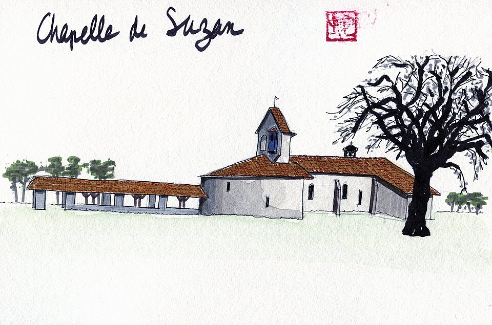 L'église Saint-Jean-Baptiste de Suzan est un lieu de culte catholique situé à Ousse-Suzan, dans les Landes. Classée au titre des monuments historiques le 27 décembre 1996, elle occupe avec ses abords un site naturel inscrit de 3,9 ha par arrêté ministériel du 19 mai 1981. Ancienne église paroissiale devenue succursale d'Ousse à la Révolution, elle est également connue sous le vocable de Saint-Michel en raison d'un pèlerinage et d'une foire qui se tiennent chaque année à la fête de ce saint. Le Liber rubeus la mentionne sous le nom « Sanctus Johannes de As Susan ». La partie la plus ancienne de l'édifice actuel est la nef romane, qui remonte au XIIe siècle. Le chevet polygonal a été élevé au XIIIe siècle et voûté d'ogives au début du XVIe siècle, époque à laquelle un vaste décor peint a été réalisé dans le chœur. Ces peintures murales de la première moitié du XVIe siècle figurent la vie du Christ et du Précurseur et incluent notamment une représentation des sept péchés capitaux. L'église a été augmentée au cours du Moyen Âge d'un important porche semi‑circulaire ; selon les sources, cet aménagement est attribué au XIVe ou au XVe siècle. Un avant-porche, dont le claveau porte la date de 1742, vient compléter cet ensemble et le clocher‑mur paraît d'époque postérieure. La sacristie et les baies en arc segmentaire de la nef semblent appartenir au XVIIIe siècle. Des restaurations menées en 1981-1982 ont permis la mise au jour des peintures du chœur. À l'intérieur, la clef de voûte présentant une croix de Malte, ainsi que l'autel de saint Jean orné d'un tableau du baptême du Christ et d'un autre représentant saint Michel terrassant le dragon, témoignent de l'importance décorative du lieu. À proximité se trouve la fontaine Saint-Jean-Baptiste, sur le ruisseau nommé le Capet ; elle est abritée par un caveau qui permettait autrefois des ablutions corporelles dans une eau soufrée réputée pour soulager maladies de peau et rhumatismes. Le site accueille depuis le XIIe siècle la foire d'Ousse-Suzan, inscrite à l'Inventaire du patrimoine culturel immatériel en France. Bien qu'aucun document ne le confirme formellement, on suppose que l'église a pu servir de sanctuaire sur un itinéraire secondaire de pèlerinage vers Saint-Jacques de Compostelle, les pèlerins poursuivant ensuite leur route vers Saint-Yaguen.