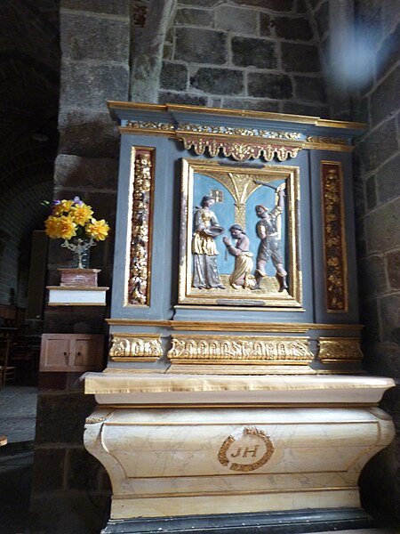 L'église Saint-Jean-Baptiste de Tournemire, dans le département du Cantal, repose sur une nef du XIIe siècle largement remaniée au XVe siècle. Ravagée en 1360 lors du siège du château, elle fut restaurée et revoûtée au début du XVe siècle, et on y ajouta sept chapelles latérales ainsi qu'un porche. Chacune des chapelles présente un enfeu faisant face au chevet, disposition rare qui donne l'aspect d'un passage ensuite muré. Les voûtes nervées portent aux clés les blasons des seigneurs de Tournemire et l'ensemble est complété intérieurement par un baldaquin de style Louis XIV. L'édifice conserve des chapiteaux romans ainsi que des chapiteaux du XVe siècle. Accolée à la montagne, l'église s'ouvre latéralement au sud par un portail à archivolte moulurée. Au revers de la façade ouest se trouve une tribune en bois accessible par un escalier de pierre. Sur la première travée de la nef s'élève un clocher trapu et le chœur se termine par un chevet plat. L'église est le dernier vestige de l'ancien château féodal des Tournemire. Selon la légende rapportée par le moine bénédictin Dom Claude Béral, Rigaud Ier de Tournemire aurait pris la croix et séjourné à Jérusalem ; d'après une relation d'un moine d'Aurillac qui l'accompagnait, il serait revenu porteur d'une épine de la Couronne du Christ, conservée aujourd'hui dans l'église. L'édifice est classé au titre des monuments historiques par arrêté du 13 mars 1944.