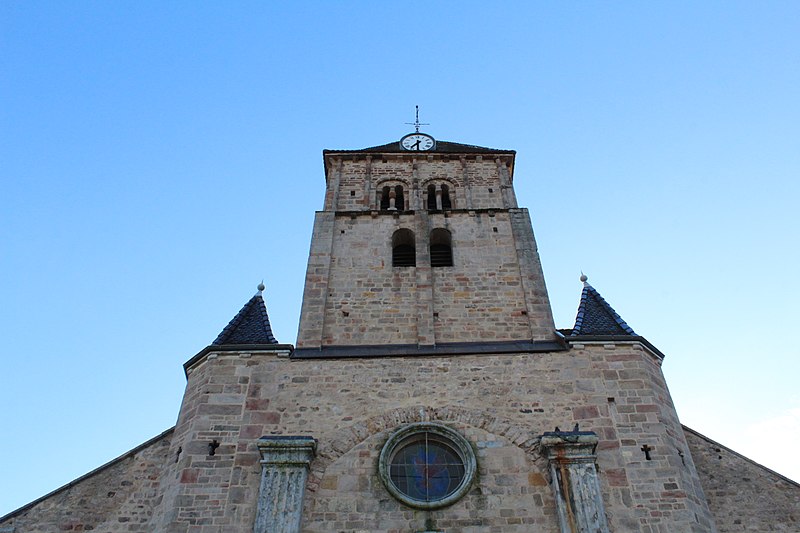 L'église Saint-Jean‑Baptiste de Tramayes se situe sur la commune de Tramayes, en Saône‑et‑Loire, en région Bourgogne‑Franche‑Comté. L'édifice a été bâti aux XIe et XIIe siècles. La nef et le chœur ont toutefois été dévastés en 1793, pendant la Révolution, et de l'ancienne église romane il ne subsiste que le clocher, dont la construction remonte aux années 1100‑1200. Le reste de l'édifice a été reconstruit en 1846. En 1845, pour répondre à l'augmentation de la population et au développement économique du canton dont Tramayes était le chef‑lieu, l'église fut agrandie et inversée : l'abside fut démolie et un portail surmonté d'un oculus aménagé dans l'arc triomphal. La nouvelle façade est dominée par le clocher roman, devenu clocher‑porche, et épaulée par deux tourelles d'escalier. L'édifice a été inscrit au titre des monuments historiques par décret du 16 octobre 1930. L'intérêt principal de l'église réside dans son clocher de plan barlong à deux étages, appartenant à l'art roman et orné de colonnes et de pilastres. Il est séparé en deux niveaux par un cordon porté par des modillons nus et a conservé deux chapiteaux : des rangs de palmes au sud et des lions affrontés sur corbeille au nord. Le clocher a été restauré en 1998 à l'initiative de l'Association pour la sauvegarde du patrimoine de Tramayes, créée en 1996, avec le soutien de la commune. Il abrite trois cloches : la plus ancienne date du siècle de Louis XIV et la plus récente du tout début de la Troisième République. Le bourdon, qui pèse 1,7 tonne avec son battant, date du Second Empire et provient de la basilique Saint‑Martin d'Ainay à Lyon, qui désirait s'en dessaisir. Le chœur conserve un maître‑autel trapézoïdal en marbre blanc, orné d'une marqueterie colorée. L'église, consacrée, relève du diocèse d'Autun et dépend de la paroisse Saints‑Apôtres‑en‑Haut‑Clunisois, dont le siège est à Trambly ; elle est affectataire au titre de la loi de 1905 et sert de lieu de culte catholique.