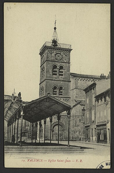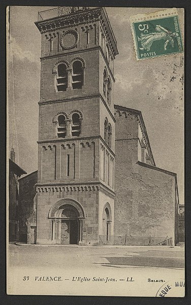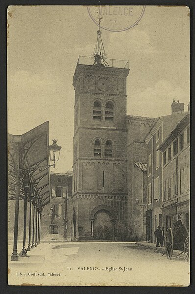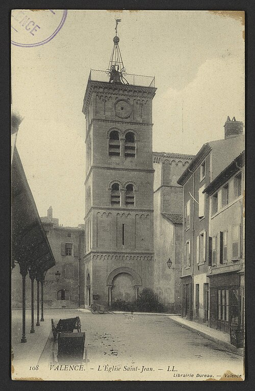 L'église Saint-Jean-Baptiste, située sur la place Saint-Jean dans la vieille ville de Valence (Drôme), occupe le point le plus élevé de la cité et témoigne de son ancienneté comme l'un des premiers lieux de culte chrétiens de Valentia. Des documents mentionnent la tenue de conciles en son sein, notamment ceux de 374 et de 855, et l'édifice apparaît pour la première fois dans l'inventaire du chapitre de Valence en 1189. La tradition retient une fondation au haut Moyen Âge, mais ses origines précises demeurent incertaines. L'église est inscrite au titre des monuments historiques depuis le 4 août 1978.