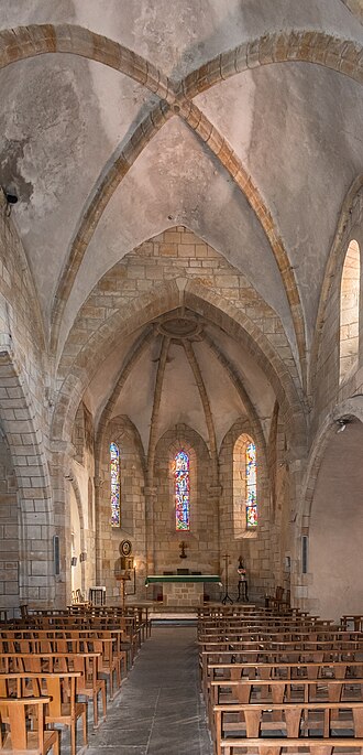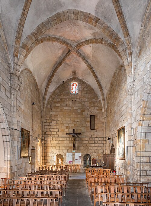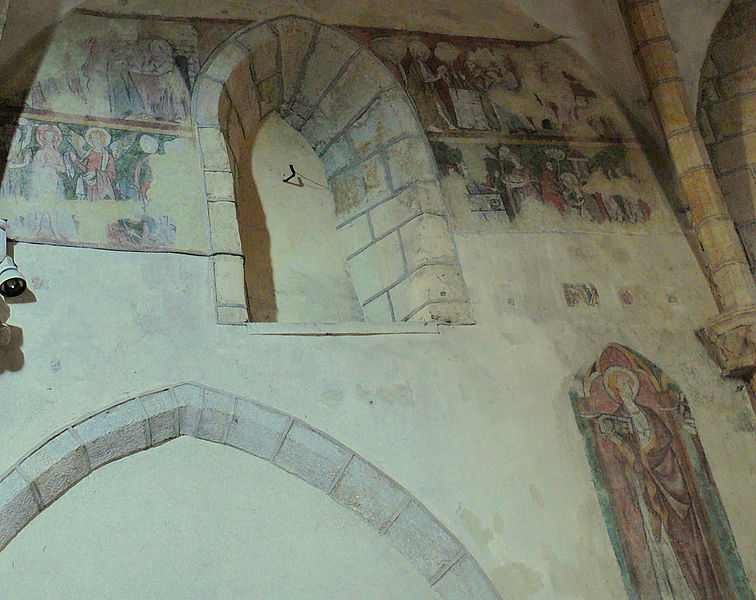 L'église Saint-Jean-Baptiste, située à Vic-le-Comte (Puy-de-Dôme), a parfois été attribuée aux hospitaliers de Saint-Jean de Jérusalem et dépendait avant 1789 de l'abbaye de Manglieu, qui nommait le curé. L'abbé Jean-Baptiste Fouilhoux conteste l'existence d'une commanderie et soutient que l'édifice a été construit par les fidèles. L'église présente une nef de deux travées voûtées d'ogives dont les nervures retombent sur des chapiteaux de style roman. L'entrée principale s'effectue par un portail trilobé du XIVe siècle, type très rare dans la région. Le chevet est à pans coupés et la chapelle du chœur conserve, sur ses murs nord et sud, des peintures attribuées au XIIIe siècle. Sur ces murs, deux bandes peintes superposées surmontent un personnage debout dans une arcature, et des peintures hautes encadrent une fenêtre en arc brisé. À l'origine romane, l'édifice ne comprenait primitivement qu'une nef avec ou sans abside. Après la détérioration ou l'effondrement de la voûte, il a été repris en style gothique et voûté en tiers-point avec croisées d'ogives. Pour permettre cette transformation, les murs ont été surélevés tout en conservant la corniche à corbeaux romane. L'abside actuelle, à pans coupés, est voûtée en ogives et percée de fenêtres ; on ignore si elle remplace une abside romane ou si elle est de création gothique, cette dernière hypothèse étant jugée probable en l'absence de traces de surélévation. Deux portes donnaient accès à la nef : la porte méridionale, petite et en plein cintre, paraît contemporaine des murs romans, tandis que la porte nord, plus grande et en ogive, a été percée postérieurement. Deux chapelles ajoutées forment un faux-transept ; la chapelle nord fut édifiée au XIVe siècle par la famille des comtes d'Auvergne pour la vicairie fondée par le cardinal de Boulogne, et la chapelle sud a été financée par le prêtre Pierre Dalmas en 1489. Les fonts baptismaux de la paroisse se trouvaient dans cette église, qui servait aussi à l'enseignement religieux des enfants. Un testament de la fin du XVIIe siècle atteste la présence de la confrérie du Rosaire dans l'édifice. Un procès-verbal de 1726 indique à tort que la chapelle paroissiale de Saint-Jean-Baptiste était autrefois église paroissiale, l'église paroissiale étant en réalité Saint-Pierre. Pendant la Terreur, l'église fut utilisée comme local de réunions populaires. L'édifice a été classé au titre des monuments historiques en 1962. Des peintures murales découvertes en 1952 occupent la travée droite du chœur, sur les murs nord et sud, les peintures du mur sud étant les mieux conservées. Au premier registre, à 2,65 m du sol, sont représentés six apôtres, trois de chaque côté de la fenêtre centrale aujourd'hui bouchée.