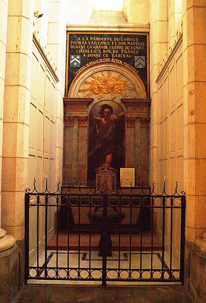 L'église paroissiale Saint-Jean-Baptiste se situe au Loroux-Bottereau, dans le département de la Loire-Atlantique. Elle est la troisième église portant ce nom sur ce site. Le premier édifice, construit aux XIe ou XIIe siècles et agrandi au XVe siècle, fut incendié par les colonnes infernales en mars 1794. Une reconstruction eut lieu en 1817 et 1820, mais ce nouvel édifice se révéla rapidement trop petit. L'édifice actuel fut élevé de 1858 à 1870 dans un style néo-gothique par l'architecte Henry Faucheur, durant le mandat d'Aymé-Simon Renoul, maire sous le Second Empire. Son clocher de 75 mètres abrite huit cloches d'airain de 11 tonnes. L'église conserve un ensemble de fresques romanes datées de la fin du XIIe siècle, découvertes le 21 juillet 1822 dans la chapelle Saint-Laurent, un oratoire du XIe siècle aujourd'hui disparu. Ces panneaux représentent des scènes légendaires de la vie de l'ermite saint Gilles. Le panneau supérieur montre saint Gilles blessé lors d'une chasse par Flavius, roi des Goths, et le panneau inférieur montre un souverain à genoux, coupable d'incestes avec sa sœur, implorant le saint pour obtenir le pardon divin. Selon une tradition, ce souverain serait Charles Martel, mais l'inscription MAGNVS sur la fresque renvoie à une autre version légendaire qui l'identifie à Charlemagne, né après la mort de l'ermite. Les fresques, aujourd'hui déposées, ont été classées au titre des monuments historiques en 1923. Des ressources iconographiques et documentaires sont disponibles, notamment sur Wikimedia Commons sous la fiche « Église Saint-Jean-Baptiste du Loroux-Bottereau », ainsi que sur les sites Clochers de France, l'Observatoire du patrimoine religieux et la base Mérimée. La bibliographie mentionne notamment La Bretagne romane de Marc Déceneux et plusieurs portails relatifs aux monuments historiques, à la Loire-Atlantique et à l'architecture chrétienne.