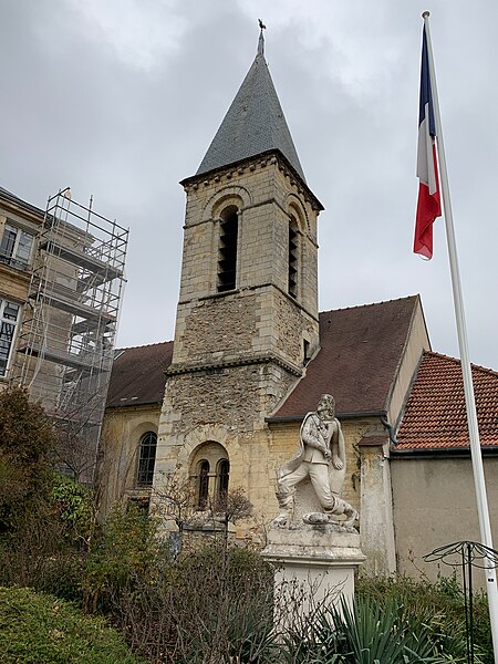 L'église Saint-Jean-Baptiste, anciennement dédiée à Sainte-Marie-Madeleine jusqu'en 1966, se situe au Plessis-Robinson, entre la place de la Mairie et l'avenue du Général-Leclerc, dans les Hauts-de-Seine. La paroisse est fondée en 1156 et l'édifice primitif remonte au XIIIe siècle. Le clocher, de style roman et daté du XIIe siècle, pourrait être contemporain de la charte de fondation de 1112 ; il présente une souche carrée sans contreforts et une longue baie en plein cintre sur chaque face, une ouverture non géminée peu fréquente, et une flèche moderne reposant sur de petits corbeaux anciens. Le clocher fait l'objet d'une inscription au titre des monuments historiques depuis le 10 avril 1929. Tombée en ruine au XVIIIe siècle, l'église est reconstruite en 1737 aux frais du curé François de la Garde, l'exception du clocher étant conservée. L'augmentation de la population liée à la cité-jardin rend l'édifice insuffisant au XXe siècle ; il est remanié et agrandi en 1949-1950 grâce à une donation des Chantiers du Cardinal et aux plans de l'architecte Henri Vidal. Lors de cet agrandissement, l'ancienne nef est convertie en narthex de la nouvelle église, orientée au nord et réalisée en béton, et l'ancien chœur devient la sacristie.