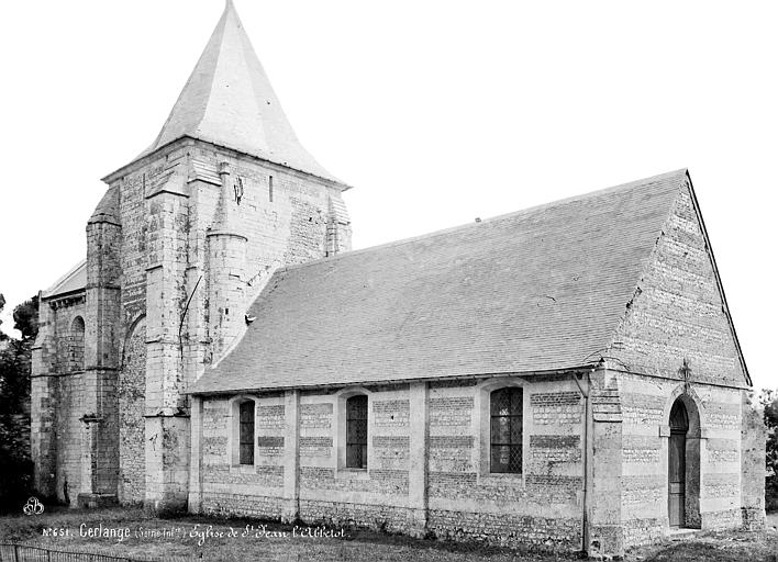 L'église paroissiale Saint-Jean d'Abbetot, située à La Cerlangue (Seine-Maritime), a été classée monument historique sur la première liste de 1840. Elle est attestée avant 1066 lorsque Raoul de Tancarville la donna à l'abbaye Saint-Georges de Boscherville, qui en prit le patronage. Reconnue pour ses phases de construction successives, elle a été en partie rebâtie vers 1070 par les chanoines de Boscherville. Le chœur et la tour de croisée datent du dernier quart du XIe siècle. La croisée du transept a été couverte d'une voûte au XVe siècle. La nef a été édifiée du XVIe au XVIIIe siècle, avec le remploi d'une corniche romane. La tourelle d'escalier est attribuée aux XVe ou XVIe siècles selon les sources. Les travées occidentales ainsi que les baies et la façade ouest datent du XVIIIe siècle. L'édifice a fait l'objet d'une restauration engagée à partir de 1837 sous la direction de l'abbé Cochet. La crypte et ses peintures murales ont été restaurées en 1855 par l'architecte Desmarest et le peintre Dauvergné. Les peintures murales comprennent des œuvres des XIIe et XIVe siècles, situées dans la crypte, le chœur et l'abside, ainsi que des décors des XVIIe et XVIIIe siècles dans les embrasures des baies et sur les murs intérieurs de la nef. Des ressources documentaires et en ligne, telles que la base Mérimée, Clochers de France et l'Observatoire du patrimoine religieux, ainsi que plusieurs portails régionaux et thématiques sur la Seine-Maritime, l'architecture chrétienne, le catholicisme et les monuments historiques, fournissent des informations complémentaires sur l'église.