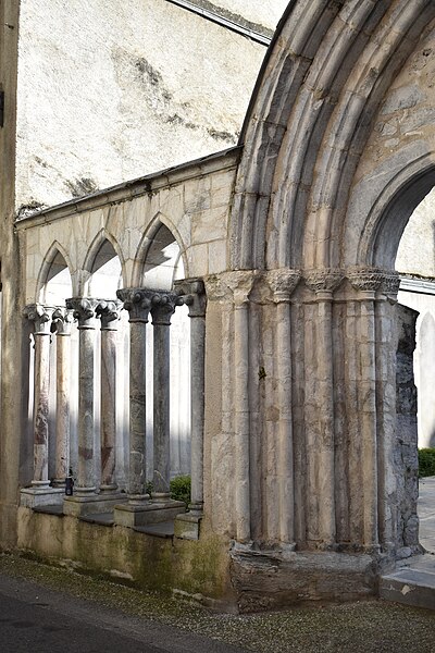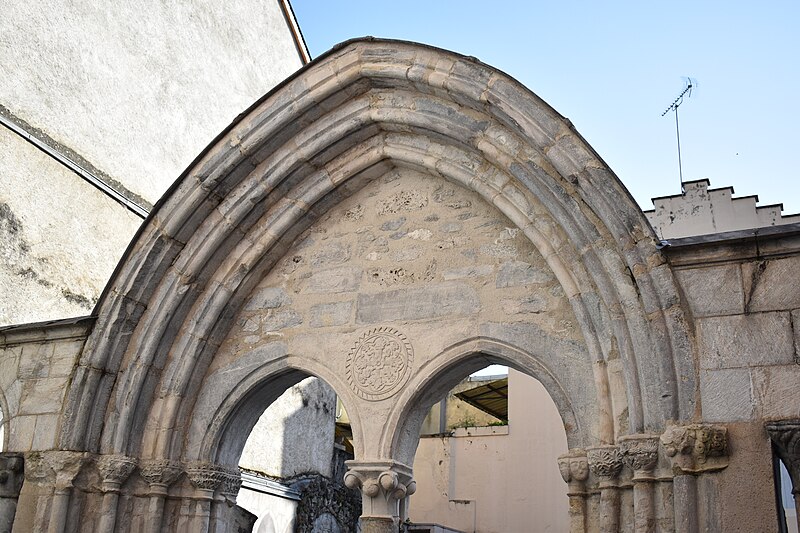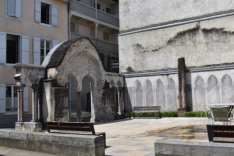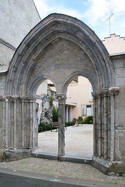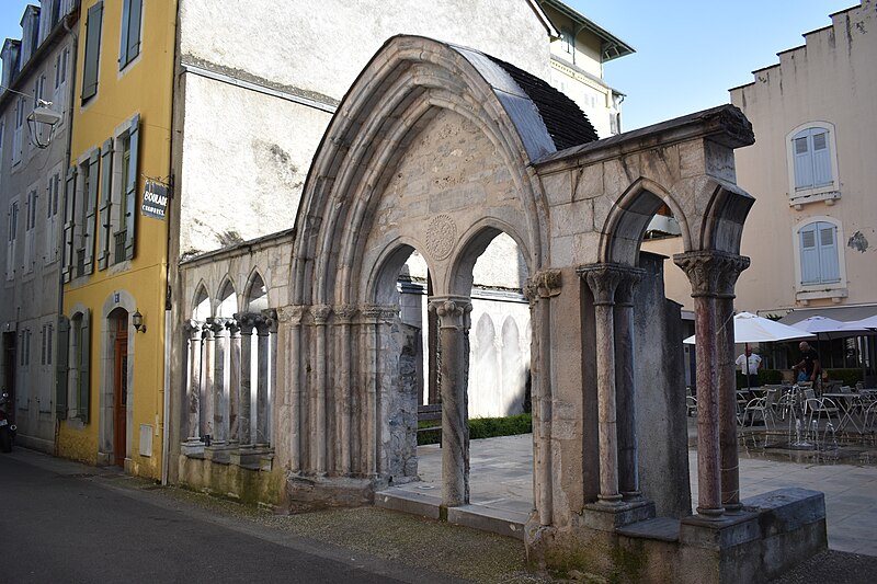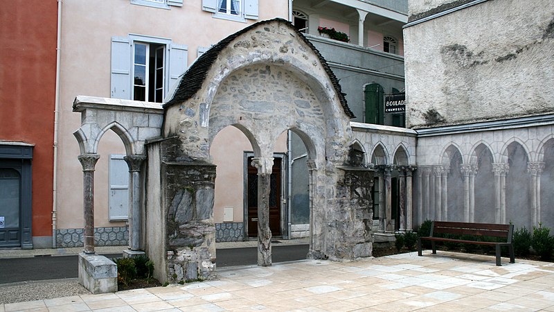 L'ancienne église Saint-Jean de Bagnères-de-Bigorre, en Bigorre (Hautes-Pyrénées), a été construite vers 1280 par les Hospitaliers de l'ordre de Saint-Jean de Jérusalem et portait le vocable de saint Jean. Après la Révolution, elle fut transformée en théâtre. Un incendie en 1901 la réduisit en ruines ; seuls subsistent le portique et son portail central, inscrits au titre des Monuments historiques en 1926. Les vestiges se situent à l'angle de la rue Saint-Jean et de la rue des Thermes. Le portail est composé de deux baies en ogive séparées par une colonne puissante dont le chapiteau sculpté présente de larges fleurs de style roman. Le tympan porte une croix de Jérusalem inscrite dans un cercle orné d'une torsade. L'ensemble est surmonté d'un grand arc en ogive. De part et d'autre, le portique se prolonge par des baies en ogive soutenues par des colonnes doubles à chapiteaux romans doubles.
