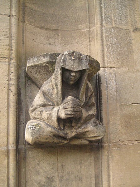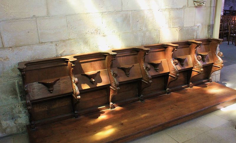 Le mobilier comprend statues, éléments liturgiques et toiles : l'ancien maître-autel de l'abbaye d'Ardenne, installé en 1812 et détruit à la fin du XIXe siècle, a toutefois laissé deux statues polychromes en bois représentant saint Norbert et saint Augustin classées monuments historiques depuis 1908. Sont également conservés une Vierge peinte du XVIIe siècle dite Notre-Dame-de-Protection provenant de la porte Millet, une statue en bois de saint Jean-Baptiste à l'origine polychrome, une statue de Jean Soreth et un christ calciné retrouvé après la bataille de Caen. Une crédence en bois taillé et doré du XVIIIe siècle est classée depuis 1977 ; l'ancien maître-autel de Notre-Dame du Carme, remonté dans le transept sud, est une œuvre du XVIIe siècle endommagée en 1944 et protégée depuis 1975. Le retable du transept présente à sa gauche saint Joseph, à sa droite sainte Thérèse d'Ávila et, au centre, une statue de sainte Catherine ; une toile représentant l'Annonciation orne le centre du retable et paraît antérieure à 1620 alors que l'ensemble date de la fin du XVIIe siècle. Parmi les tableaux déposés figure l'Ecce Homo de Pieter Thys, restauré en 2000 et classé en 2001, ainsi que l'Adoration des mages d'après Jean Restout, classée en 1980.