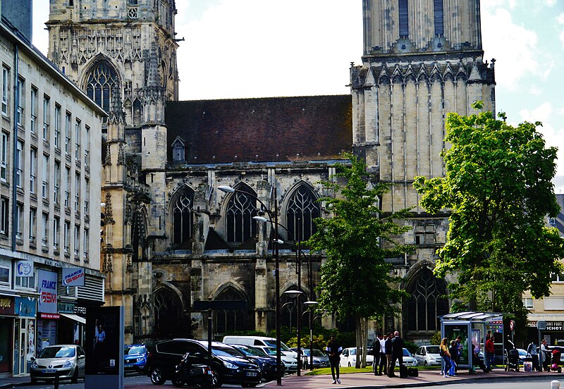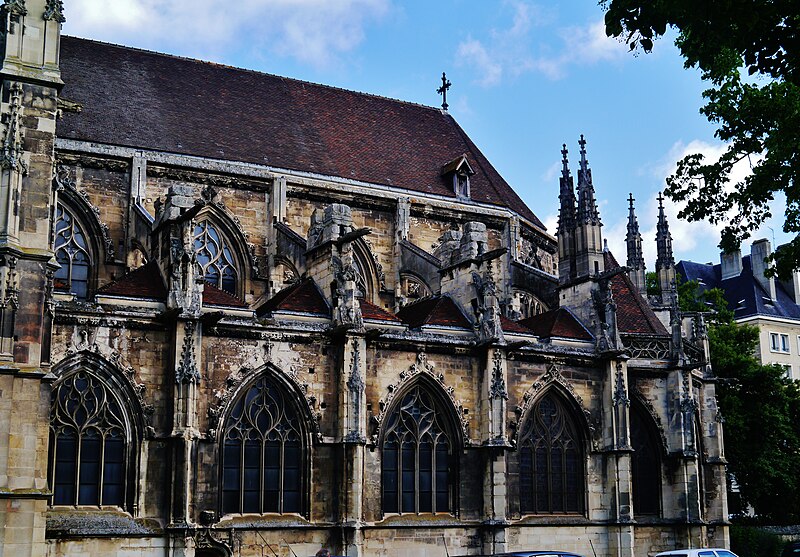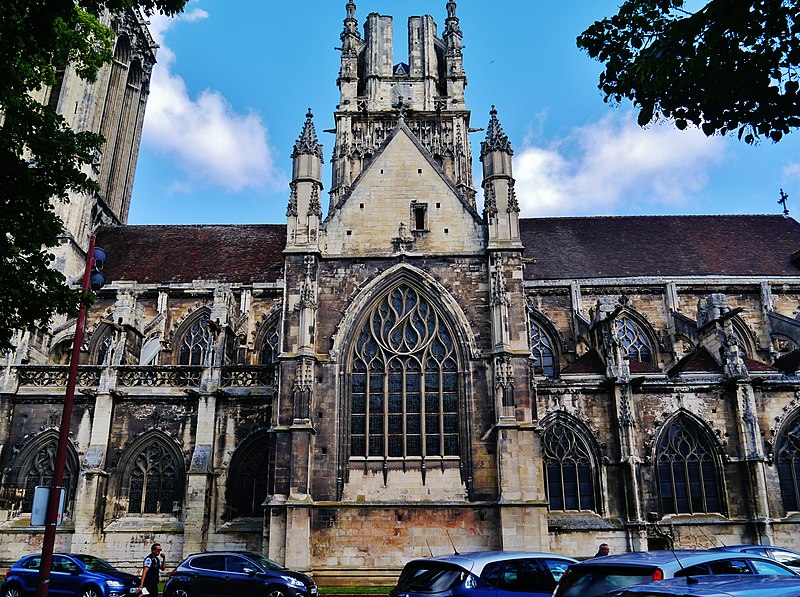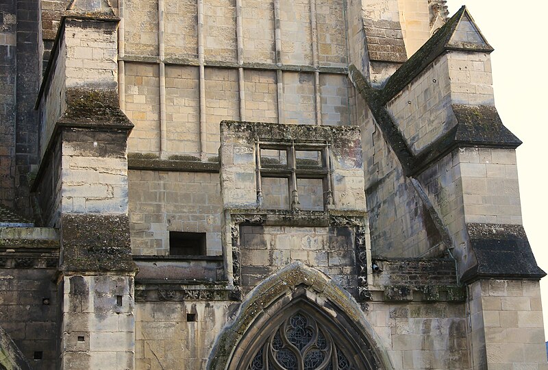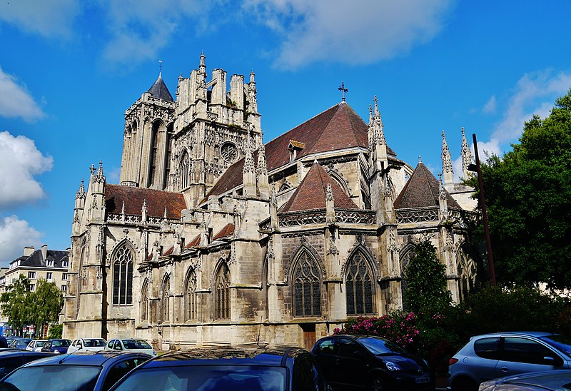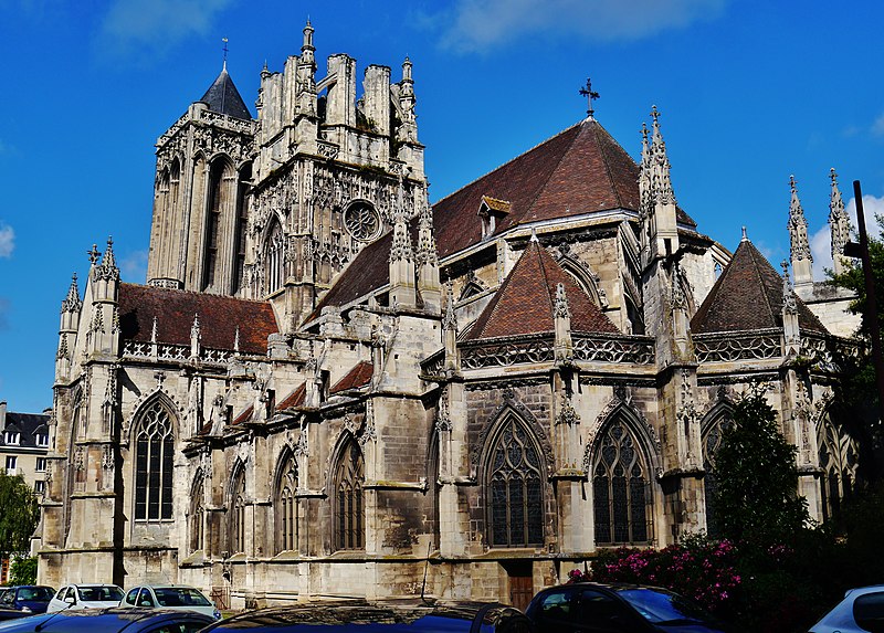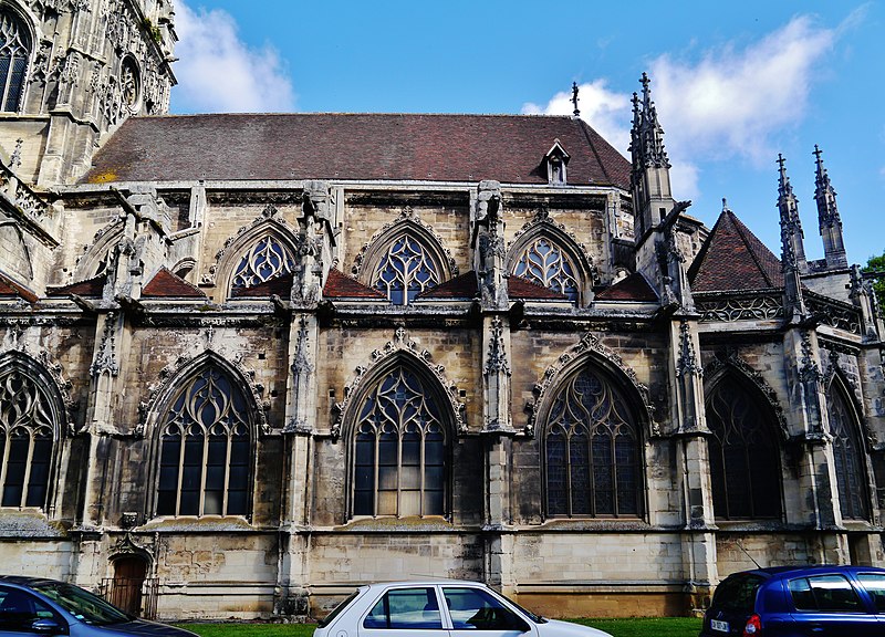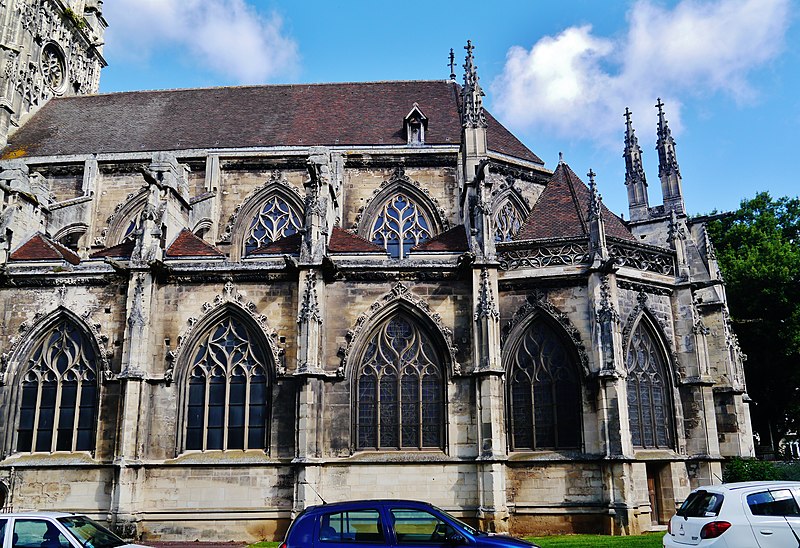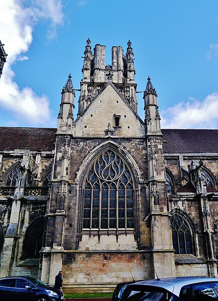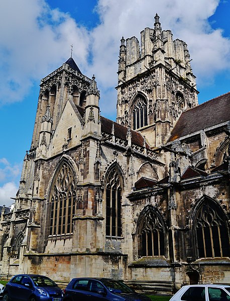 L'édifice mesure 70 mètres de long, 22 mètres de large au niveau de la nef et 32 mètres entre les deux transepts, pour une superficie au sol de 1 641 m2, et présente deux particularités de plan : un chœur plus long que la nef (quatre travées contre trois) et un chevet orienté vers le nord-est plutôt que vers l'est. Les travaux de consolidation de la tour-porche en 2013 ont permis la mise au jour d'un ensemble exceptionnel de dalles funéraires gravées des XIIIe et XIVe siècles ainsi que de nombreux ossements enfouis dans le sous-sol.