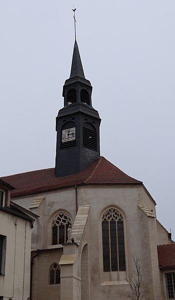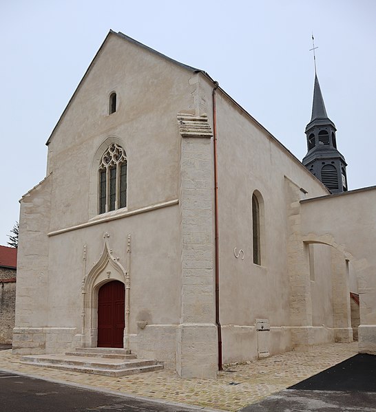 L’église Saint-Jean, située sur la RD 965 à la sortie nord-ouest de Châtillon-sur-Seine, se trouve à proximité du château Marmont. Elle prend son origine d’une chapelle fondée par le marchand Jean Dupuis, consacrée en 1551 par l’évêque Philibert de Beaujeu, qui y fit déposer un ossement de saint Jean‑Baptiste. Au cours du premier quart du XVIIe siècle la chapelle fut agrandie par la construction d’une nef unique voûtée, dont figurent les dates 1610 sur le linteau de la porte latérale gauche et 1617 sur la clé de voûte de la première travée. Le clocher, installé alors sur la troisième travée de la nef, pesa sur la structure et provoqua des désordres auxquels s’ajoutait l’état menaçant des arcs-doubleaux ; il fallut sans doute alors édifier des arcs-boutants et obturer les grandes arcades latérales droites des deux travées antérieures, qui donnaient probablement accès à des chapelles. En 1723 la construction d’une nouvelle sacristie fut autorisée à l’emplacement de l’ancienne, puis en 1725 fut aménagé un caveau destiné aux personnes sans droit de sépulture particulier, accessible de l’extérieur par une dalle encastrée dans le mur droit de la première travée, portant la date gravée de 1726. Le clocher, très vétuste, fut reconstruit en 1740 par l’architecte Verniquet ; il consistait en une charpente octogonale surmontée de deux petits dômes et d’une flèche édifiée au-dessus du chœur, mais son poids engendra de nouveaux désordres. D’importants travaux de consolidation furent réalisés en 1775‑1777 sur la base d’un devis d’Antoine Colas : on y construisit notamment, dans le chœur, deux arcs-doubleaux portés par quatre piliers dits dosserets ou pilastres pour soutenir le clocher. À cette occasion un nouveau porche, porté par deux colonnes d’ordre toscan, fut élevé ; il figure sur le cadastre napoléonien de 1810 mais a été détruit au cours du XIXe siècle. Un ouragan de 1810 détruisit le clocher, qui fut reconstruit vers 1820. Quelques travaux et modifications eurent lieu dans la seconde moitié du XIXe siècle ; les baies des chapelles datent vraisemblablement de cette période. L’édifice présente une nef unique voûtée et un clocher situé au‑dessus d’un pseudo-transept ouvrant sur deux petites chapelles latérales ; le chœur pentagonal, prolongé par la sacristie, est aveugle au fond et éclairé par des vitraux sur les autres côtés. De puissants contreforts latéraux assurent le contreventement de l’ensemble. Le mobilier de l’église est inscrit aux Monuments historiques et de nombreux éléments sont classés à titre individuel, si bien que leur concentration fait de Saint‑Jean un véritable musée : parmi eux figurent le tableau Vierge à l’Enfant (1531, classé en 1940), le vitrail de l’Arbre de Jessé (1551, classé en 1925), des statues remarquables — Vierge aux deux colombes et au lys (1320, classée en 1925), Éducation de la Vierge (XVe, classée en 1964), Christ de souffrance (XVIe, classé en 1929), Christ monumental en croix et Saint‑Michel (bois polychrome, XVIe, classés en 1925), ainsi qu’une Piéta (XVIIe, classée en 1925). Les stalles et lambris datés de 1665, provenant de la chartreuse de Lugny, sont également classés (1925). On relève enfin des vestiges de fresques murales et des dalles funéraires anciennes au sol. L’église Saint‑Jean a été inscrite au titre des monuments historiques en 1991 et fait l’objet d’importants travaux de réfection.