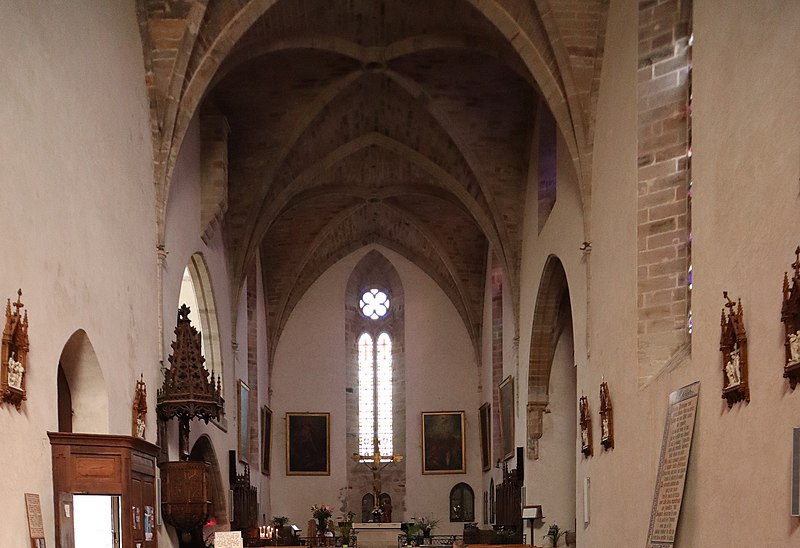 L'église Saint-Jean de Najac est une église catholique située sur la commune de Najac, dans le département de l'Aveyron en région Occitanie. Après la défaite du comte de Toulouse, Najac fut donné à Alphonse de Poitiers. Face à une tentative de révolte des habitants, le nouveau seigneur prit des précautions et confia à un architecte du domaine royal la mission de renouveler et de renforcer les défenses du château, vers 1253. La construction de l'église est contemporaine de celle du château, ce qui laisse supposer que le même architecte en fut responsable. L'édifice présente une nef à chevet plat et deux chapelles qui forment les bras d'un transept peu saillant. La chapelle nord est interrompue par une tribune, au-dessus de laquelle se dresse le clocher, hexagonal en plan ; à chaque angle du tambour une colonnette descend jusqu'à la corniche et se prolonge sur les arêtes. L'église est classée au titre des monuments historiques le 14 juin 1924. Des notices et ressources sur l'édifice figurent dans les bases Mérimée, PSS et Structurae ainsi que sur les sites Clochers de France, l'Observatoire du patrimoine religieux et les portails consacrés aux monuments historiques, à l'Aveyron et à l'architecture chrétienne.