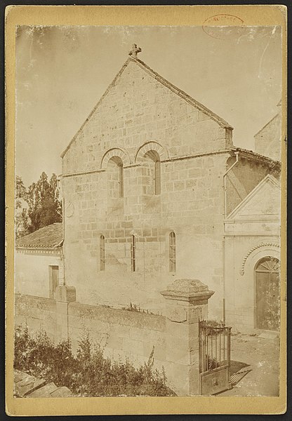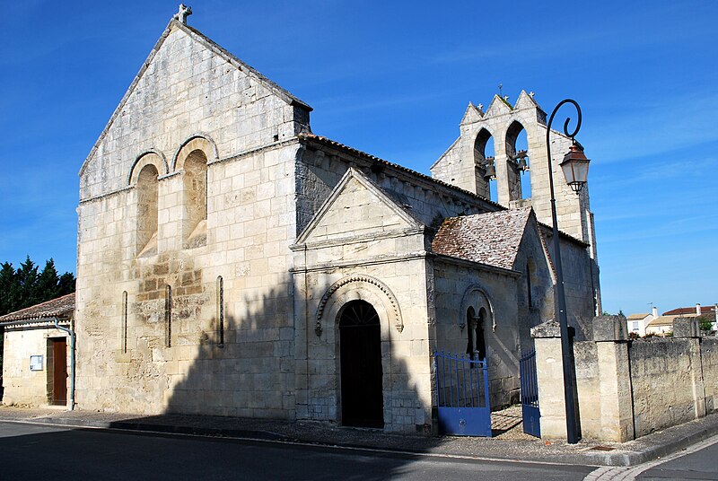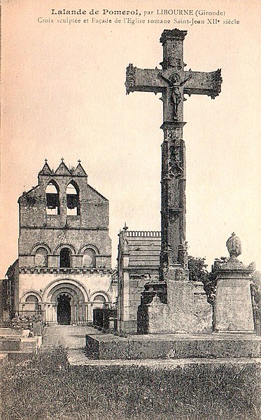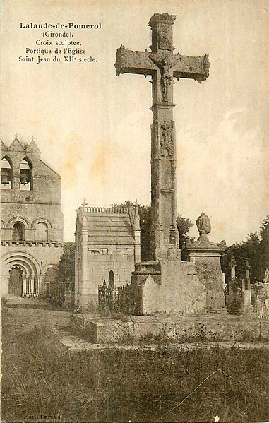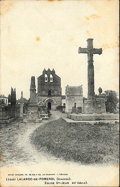 L'édifice est traditionnellement attribué aux hospitaliers de Saint-Jean de Jérusalem, et il constitue, malgré des remaniements, l'unique église du Libournais représentative de leur style et le seul vestige architectural de la commanderie du XIIe siècle ; des guides évoquent parfois les Templiers sans fondement, et une autre hypothèse, citée par Jean-Auguste Brutails, mentionne des « religieux de Lalande, de l'ordre de Grandmont » dans un mandement du roi d'Angleterre daté de Castillon en 1255. Des modifications datées du XIVe siècle et des restaurations au XIXe siècle affectent l'édifice : en 1843 deux chapelles latérales, dédiée au sud à Notre-Dame et au nord à saint Sébastien, ont été ajoutées et communiquent avec la nef par des arcs en plein cintre ; une restauration est signalée en 1871 et une fenêtre a été agrandie au XIXe siècle. Dans le cimetière se trouve une croix du XVe siècle, composée d'un socle, d'un tronc orné de motifs gothiques et d'une croix latine portant une statuette de la Vierge à l'Enfant, l'une des nombreuses croix de la commune le long de la route de Saint-Émilion à Lalande-de-Pomerol. Un cadran canonial gravé sur un contrefort du mur sud, instrument primitif destiné à repérer les heures liturgiques, est également conservé. L'édifice est classé au titre des monuments historiques en 1943.