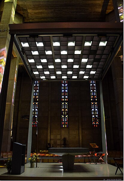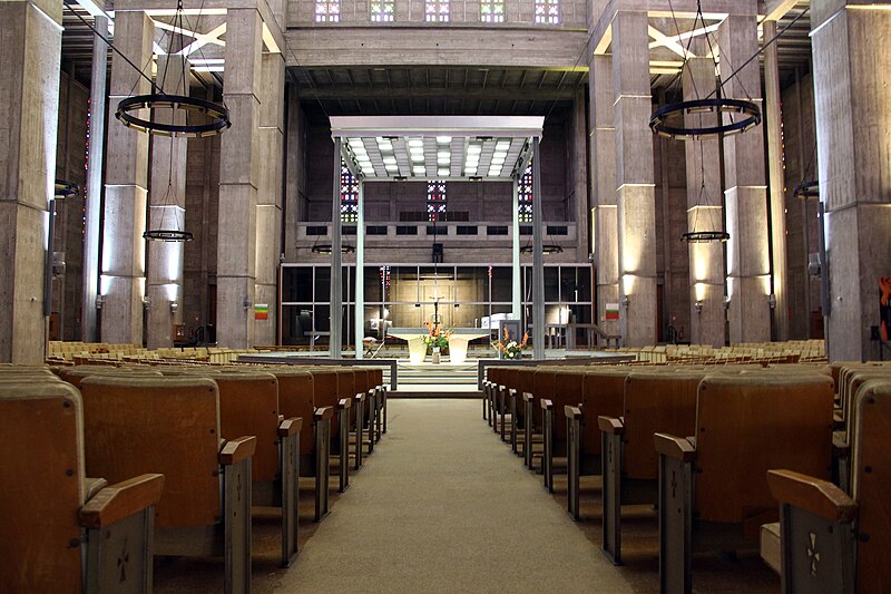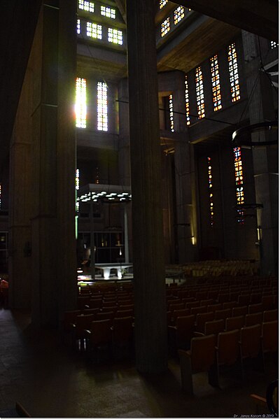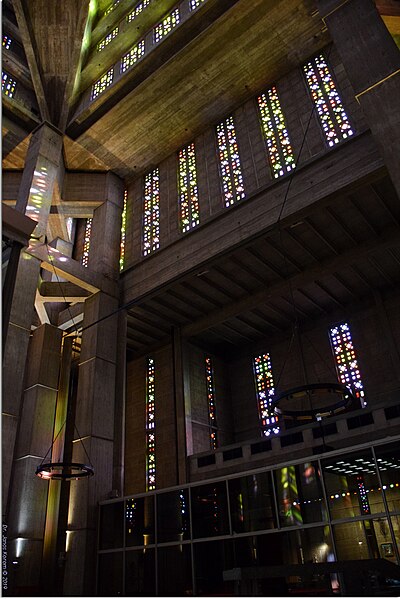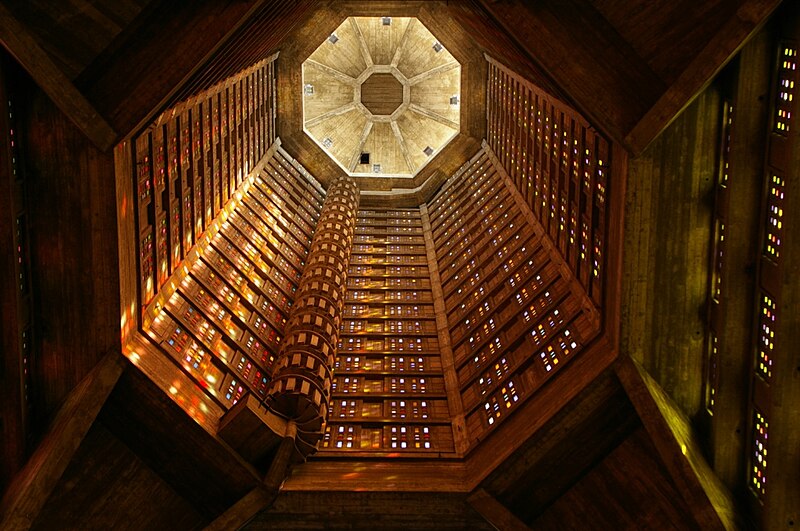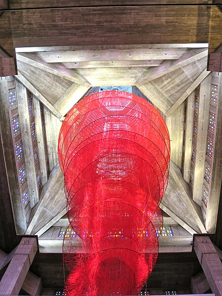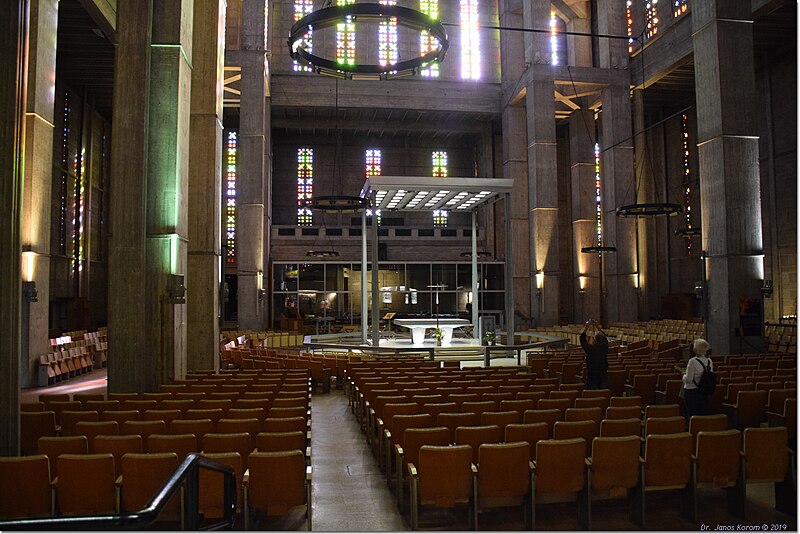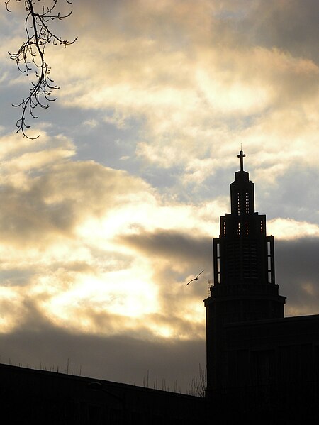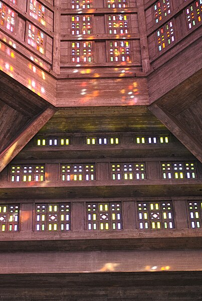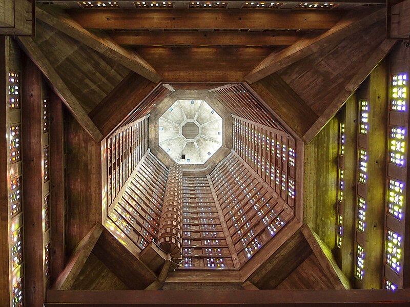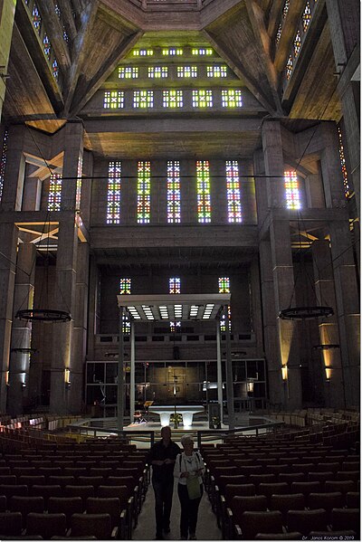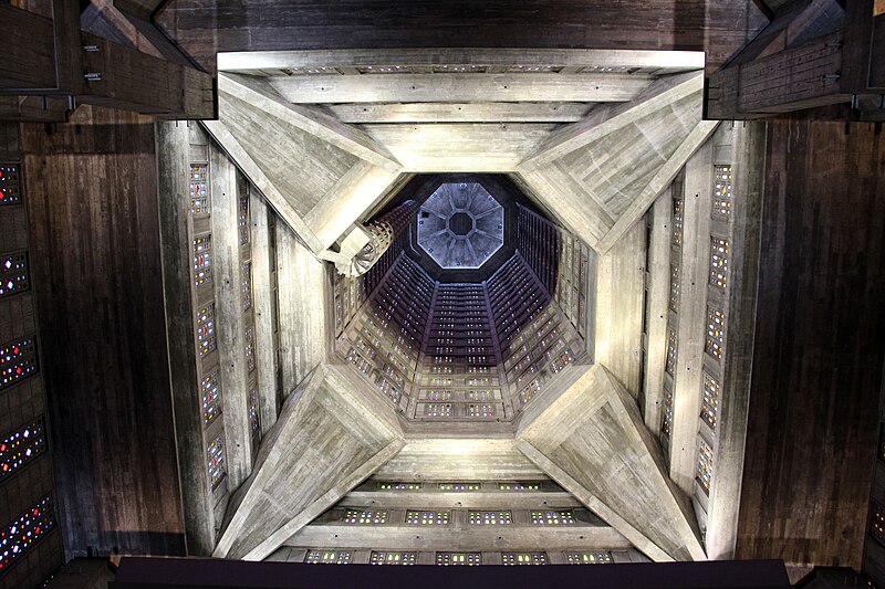 L'église Saint-Joseph, paroissiale et emblématique du centre-ville reconstruit du Havre en Seine-Maritime (Normandie), symbolise la renaissance de la cité après les destructions de 1944. L'édifice fait suite à une première église, édifiée en 1873 et détruite lors des bombardements du 5 septembre 1944 ; il se veut à la fois lieu de culte et mémorial des victimes de ces attaques. Le projet de reconstruction a été mené par Auguste Perret, architecte en chef de la reconstruction du Havre, en collaboration avec l'architecte havrais Raymond Audigier. Construit en béton armé selon un plan fondé sur des modules carrés, le bâtiment s'élève autour d'un maître-autel central et se distingue par une tour-lanterne de 107 mètres qui domine la ville. Cette tour, conçue comme un phare visible en mer et une stèle commémorative, repose sur une structure complexe de piliers et de tirants et confère à l'ensemble une forte verticalité. Les verrières aux couleurs symboliques, dessinées par la maîtresse verrière Marguerite Huré et posées par la maison Freret et Garel du Havre, participent grandement à l'atmosphère spirituelle du lieu. Les sculptures de l'édifice sont attribuées à Guy Verdoya. Les travaux ont commencé en 1951, le gros-œuvre a été achevé en 1957, trois ans après la mort d'Auguste Perret, et l'église a été consacrée en 1964. Par son plan carré et la disposition centrale de l'autel, l'édifice anticipe par ailleurs certaines évolutions liturgiques associées au concile Vatican II. Inscrite au titre des monuments historiques en 1965 puis classée en 2018, l'église Saint-Joseph est également reconnue comme l'un des éléments remarquables du centre-ville reconstruit par Perret, inscrit au patrimoine mondial de l'UNESCO en 2005. Des campagnes de mise en lumière et de restauration ont souligné sa valeur patrimoniale et contribué à redéfinir son image auprès des habitants. L'église demeure un lieu de culte actif, rattaché à la paroisse Saint-Martin du Littoral, et conserve sa double vocation de monument commémoratif et d'édifice religieux ouvert à la communauté.