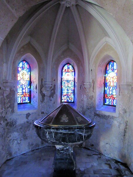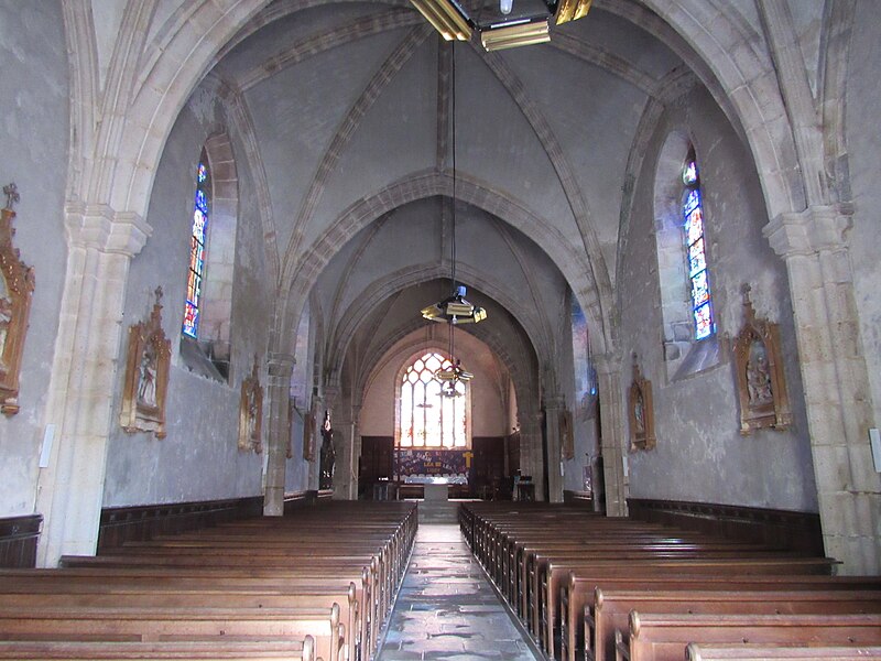 Datée du XIVe siècle, l'église présente une nef, un transept et un chœur à chevet plat, l'ensemble étant voûté d'ogives à liernes. Le transept nord est surmonté d'un clocher carré et massif. Les réseaux des baies ont pour la plupart été refaits.