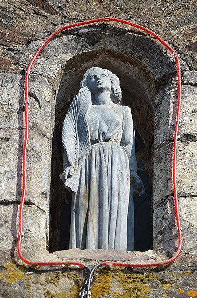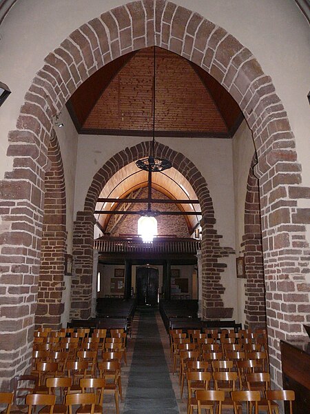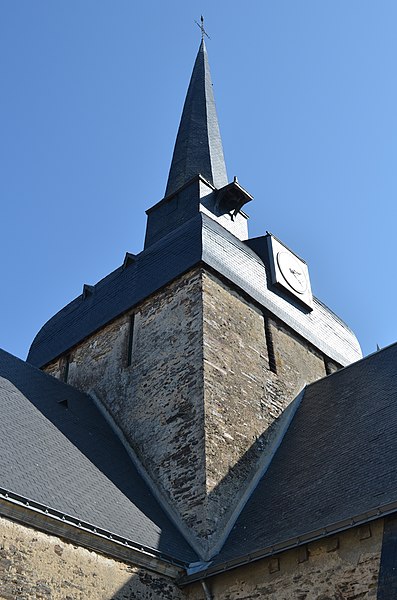 La tour de croisée, massive et percée de meurtrières, surplombe l'édifice et servait à la surveillance et à la défense du bourg ; elle est couverte d'une toiture en dôme achevée par une flèche datées du XVIIe siècle. La façade ouest présente une porte en anse de panier du XVIe siècle et la niche du pignon abrite une statue moderne de sainte Marguerite de Pisidi. À l'intérieur, la croisée de transept supportant la tour est percée de quatre grands arcs diaphragmes de profil brisé dont la retombée sur les piliers massifs est marquée par une imposte biseautée. La nef est couverte d'une voûte en lambris en vaisseau renversé à entraits et poinçons moulurés, et des amphores acoustiques sont incrustées dans les murs, comme à l'abbaye de Melleraye. L'église contient par ailleurs plusieurs objets mobiliers protégés au titre des Monuments historiques. L'ensemble illustre la double vocation religieuse et défensive de l'édifice à travers les siècles.