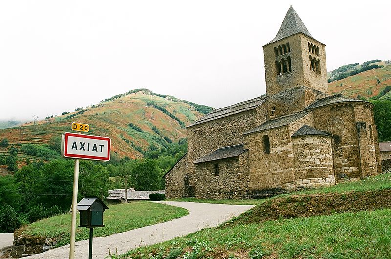 L'église Saint-Julien d'Axiat est un édifice roman situé dans le massif de Tabe, à Axiat, dans le département de l'Ariège. Elle se trouve au sud-est du village, en surplomb de l'ancien canal des moulins, à 884 m d'altitude, et l'on y accède par la route départementale 20, dite route des corniches. L'édifice présente une nef unique, un transept et trois absides. Le clocher, situé sur la croisée du transept, est de plan carré et chaque face comporte deux rangées d'arcatures retombant sur des colonnettes en marbre ou en diorite ; la rangée inférieure compte trois arcatures, la supérieure quatre plus étroites. Le décor intérieur est important. La porte occidentale est abritée par un large porche construit à la fin du XVIe siècle. L'église a été donnée à l'abbaye de Cluny par le comte de Foix Roger II le 25 janvier 1075 et a été classée au titre des monuments historiques en 1907. Parmi les éléments remarquables figurent le portail roman occidental, le chœur et un vitrail qui représente, de bas en haut, un calice, le visage du Christ sur un saint-suaire et les instruments de la Passion. Le maître-autel comporte un bas-relief où sont représentés, selon les sources, saint Matthieu, le Bon Pasteur et saint Jean l'évangéliste. La chapelle de la Vierge abrite une statue de la Vierge à l'Enfant : Marie présente l'Enfant Jésus qui montre son Sacré-Cœur. Un circuit de randonnée facile relie les chapelles romanes proches d'Axiat, d'Unac et de Vernaux, contribuant à la valorisation du patrimoine local.
