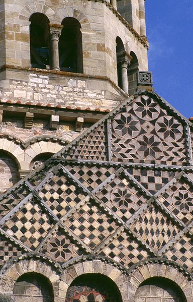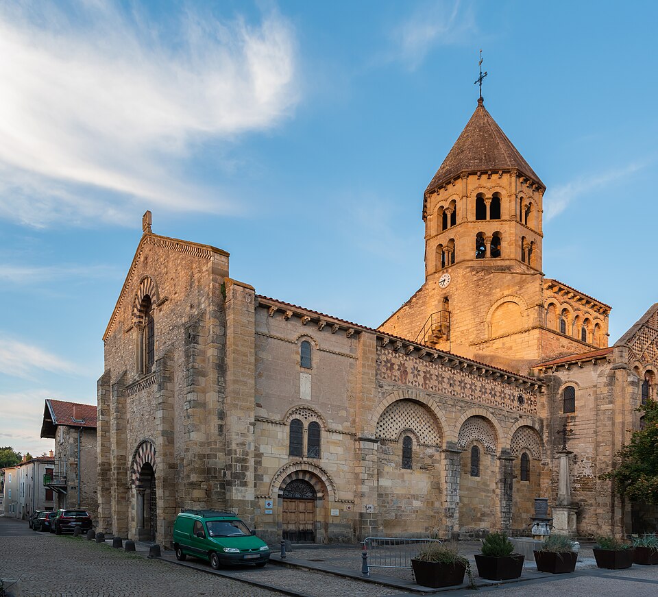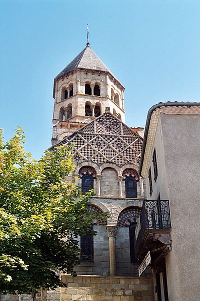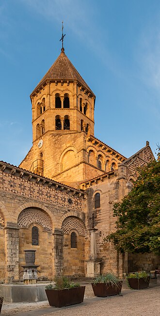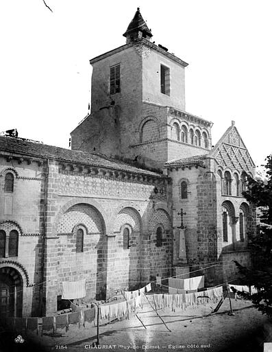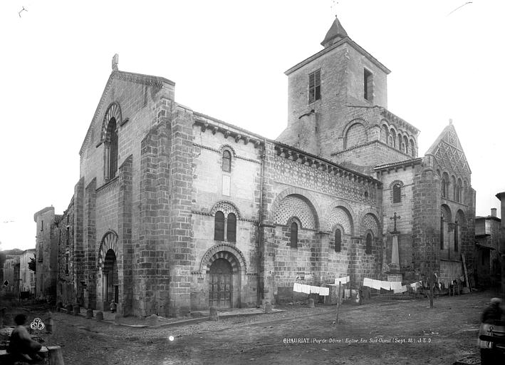 L'église Saint-Julien est une ancienne église prieurale de style roman auvergnat située à Chauriat, dans le Puy-de-Dôme (Auvergne-Rhône-Alpes). Elle dépendait de l'ordre clunisien après sa donation en 1016 par l'évêque de Clermont Étienne et son frère Robert, comte d'Auvergne, au prieuré de Sauxillanges. Sa construction remonte au XIIe siècle et elle a été achevée en 1201. Classée au titre des monuments historiques depuis 1840, elle figure parmi la première liste de protection française. L'édifice présente des traits typiques des églises romanes de Basse-Auvergne, notamment un massif barlong, un clocher octogonal, la structure des façades latérales de la nef et du transept, ainsi que des décors extérieurs en mosaïques de pierres volcaniques, des modillons à copeaux et des cordons de billettes. Lors des tremblements de terre du XVe siècle, l'église a perdu son chevet roman, remplacé ensuite par un chevet à trois pans, mais elle conserve plusieurs caractéristiques principales des grandes églises auvergnates. Le massif barlong, qui surmonte la croisée du transept et porte le clocher, est allongé transversalement et coiffé de deux toits en appentis, ce qui participe à la silhouette particulière de l'édifice. Le clocher octogonal, percé sur chaque face de fenêtres géminées avec un cordon de billettes au dernier étage, n'est toutefois pas d'origine : il a été reconstruit en 1883 par l'architecte Petitgrand, qui s'est inspiré du clocher de Saint-Saturnin. Les façades latérales de la nef et du transept montrent des fenêtres bordées de cordons de billettes logées sous de grands arcs saillants appelés arcs de raidissement. À la place des triplets de baies aveugles propres au type complet, la façade sud est ornée d'une large mosaïque de pierres polychromes figurant des rosaces et des motifs géométriques ; ce décor y a été entièrement réalisé au XIXe siècle lors de la restauration conduite par Aymon Mallay, et les décors du pignon du transept résultent également de restaurations. La façade nord conserve, sur la travée orientale de la nef, des vestiges montrant que les grands arcs étaient à l'origine surmontés du triplet caractéristique des édifices auvergnats. À l'intérieur, le transept présente la décoration typique d'un triplet, formé d'une arcature centrale surmontée d'un arc en mitre et encadrée par deux arcatures surmontées d'arcs en plein cintre.