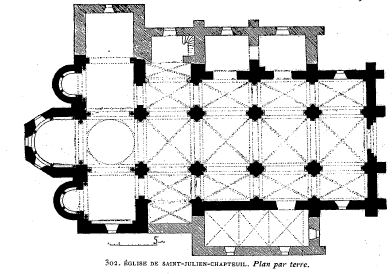 L'église Saint-Julien, église catholique de la commune de Saint-Julien-Chapteuil (Haute-Loire), est classée au titre des monuments historiques en 1907. Bâtie sur un rocher escarpé dominant la vallée, elle présente des trous de boulin dans sa partie supérieure qui laissent penser qu'elle a pu être fortifiée et recevoir un hourdage. À la fin du XIe siècle, des moines bénédictins venus de la Chaise-Dieu, à l'invitation des seigneurs de Chapteuil, fondèrent un prieuré dépendant de cette abbaye. L'église romane primitive, édifiée vers 1130, comprenait une nef de trois travées avec collatéraux, un transept doté d'une coupole sur trompes à la croisée et un chevet triabsidial. La nef actuelle à collatéraux compte quatre travées : les deux premières et la façade occidentale datent du XIXe siècle, tandis que les deux travées situées avant le transept sont d'origine romane, sauf leurs voûtes d'arêtes refaites au début du XVIIe siècle. Le transept conserve une coupole et son pignon sud a subi des remaniements. Le chœur est polygonal, voûté en cul-de-four à trois pans et éclairé par trois fenêtres romanes. Les remaniements du XVIIe siècle ont transformé les voûtes romanes du vaisseau central et des collatéraux en voûtes d'arêtes, tout en préservant les chapiteaux romans. Ces chapiteaux, d'une sculpture soignée, témoignent d'une influence byzantine et représentent des animaux et des feuillages. Pour répondre à l'accroissement de la population, des travaux d'agrandissement menés au XIXe siècle, entre 1842 et 1894, ont prolongé la nef vers l'ouest, élevé la façade actuelle inspirée de celle de la cathédrale du Puy et aménagé une crypte utilisée pour le culte pendant la mauvaise saison. La même campagne a ajouté une sacristie, un presbytère et adossé un clocher à la paroi sud de la nef. Parmi le mobilier remarquable figurent des fonts baptismaux datés du VIIe siècle dont l'origine reste incertaine, un ancien bénitier transformé en fonts et un lutrin en noyer massif haut de deux mètres, surmonté d'un pélican.