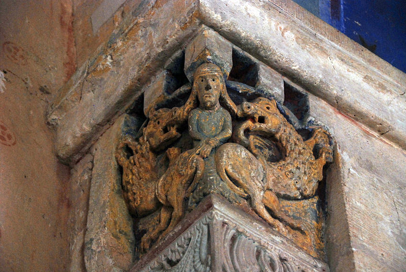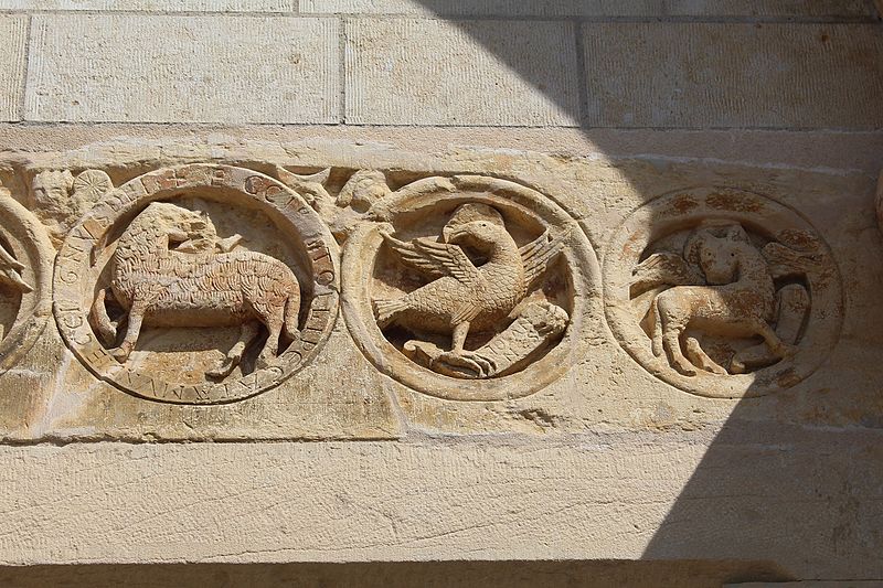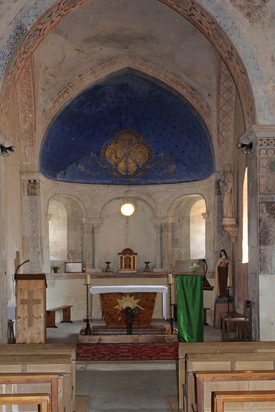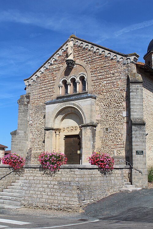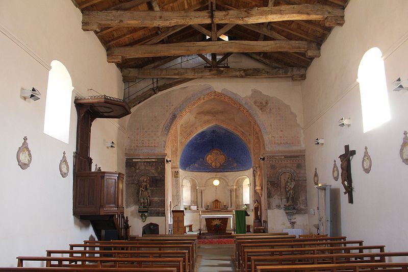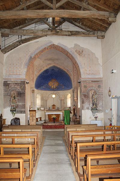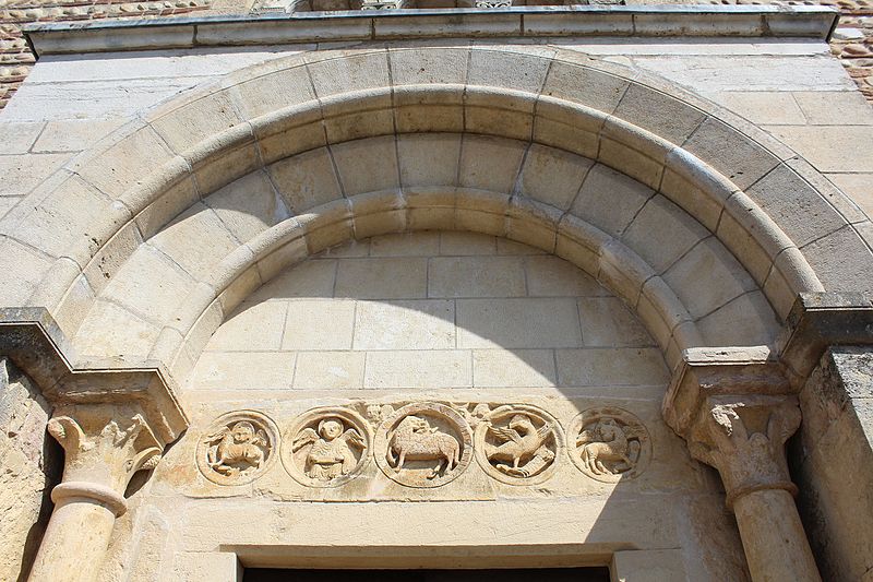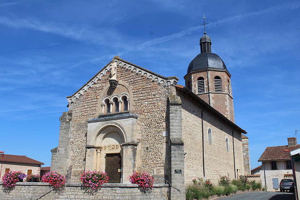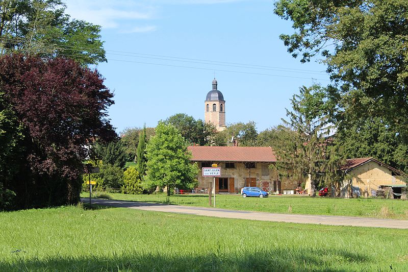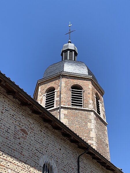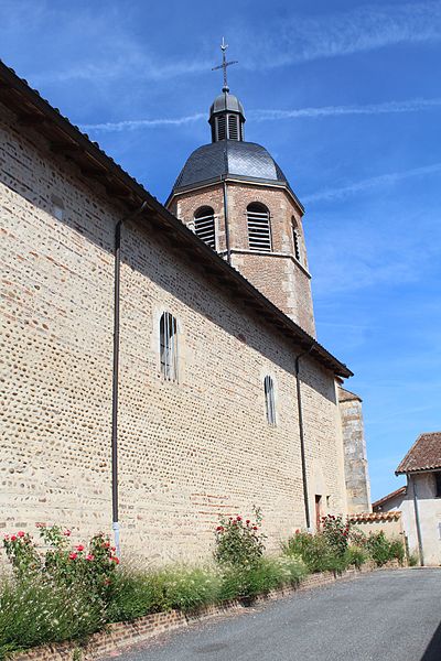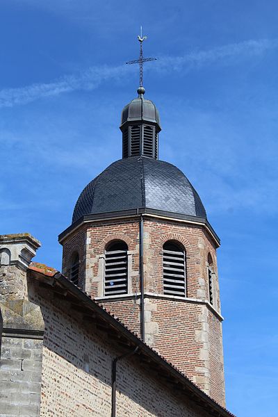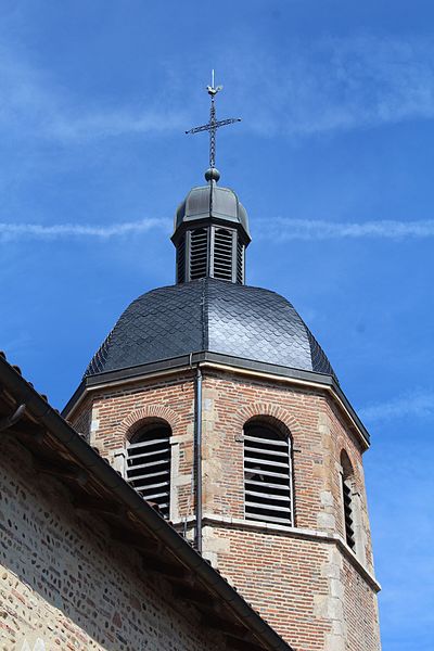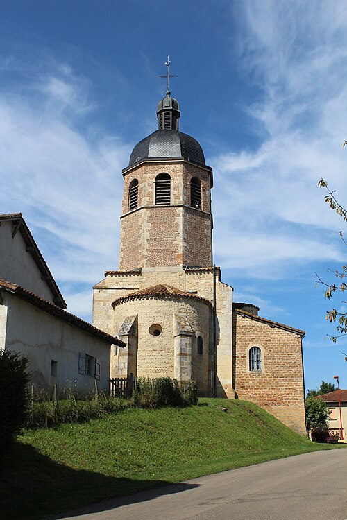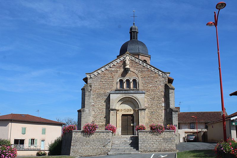 L'église Saint-Julien, située à Saint-Julien-sur-Veyle dans l'Ain (Auvergne‑Rhône‑Alpes), est un édifice roman du XIIe siècle qui dépendait de la collation de l'archevêque de Lyon et est classé au titre des monuments historiques depuis le 8 juin 1945 ; le portail et le chœur sont protégés. En 1701, une portion du mur ouest de la nef s'écroule et des réparations sont effectuées : réfection de la toiture en tuiles creuses, remise en carreaux du sol, lambrissement de la nef et reconstruction du banc en briques entourant la nef. En 1712, le beffroi et le dôme en pavillon du clocher sont remis en état. Au XIXe siècle, d'importantes transformations interviennent avec la démolition puis la reconstruction du clocher en 1838 sur les plans de l'architecte Desplace de Bourg par François Marvier, et en 1880 le toit du dôme est recouvert en ardoise par l'architecte Anselme Rochet et l'entrepreneur François Barbet. La façade principale comprend un portail dont le linteau porte cinq médaillons représentant les quatre évangélistes — de gauche à droite le lion pour saint Marc, l'homme pour saint Matthieu, l'aigle pour saint Jean et le bœuf pour saint Luc — entourant l'agneau pascal ; ce portail est encadré par deux pilastres ouvragés soutenant l'arc brisé du chœur et surmonté d'une statue de la Vierge ajoutée ultérieurement. Le chœur roman présente une travée élargie latéralement par des arcs brisés et couverte par une coupole sur trompes ; l'abside est ornée d'une arcature surbaissée de trois arcs, au‑dessus de laquelle se trouve une galonnière de pierre et, en cul‑de‑four, un ciel bleu étoilé du XIXe siècle avec un médaillon central. Deux pilastres se distinguent dans le chœur : le gauche porte un entrelacs sophistiqué et le droit présente cinq cannelures droites sur une face et cinq brisées sur l'autre ; tous deux sont coiffés de chapiteaux polychromes, celui de gauche représentant probablement le prophète Daniel dans la fosse aux lions, l'identification du droit restant incertaine. La charpente de la nef est en bois et comporte des corbeaux qui soutiennent les poutres maîtresses.