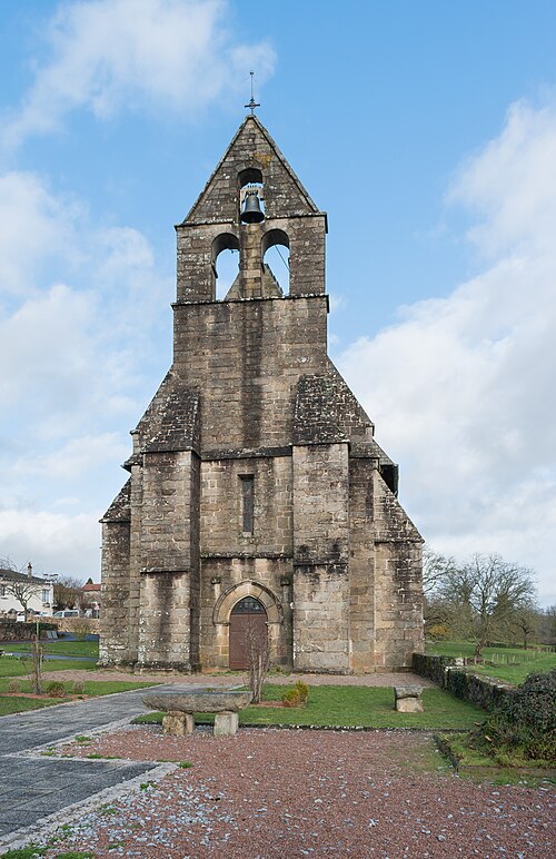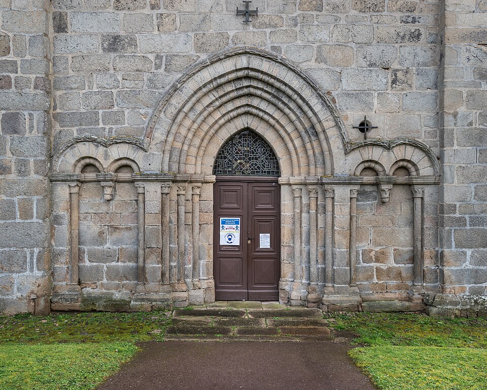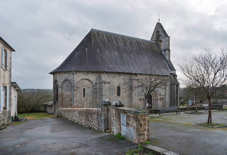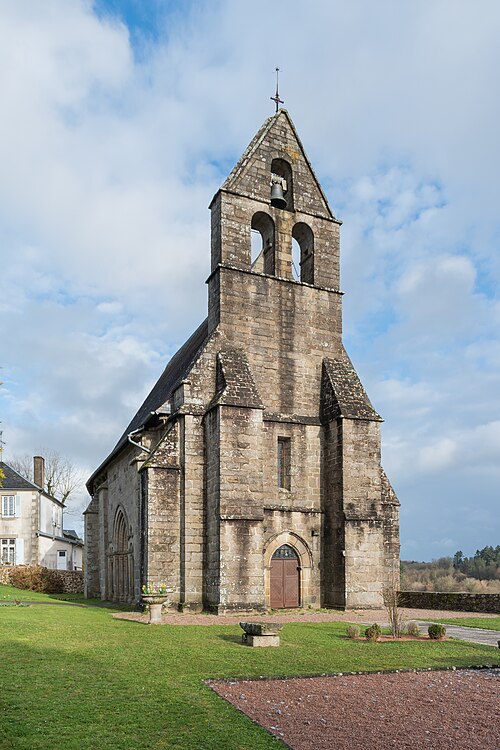 L'église Saint-Just a été élevée sur le tombeau de saint Just, né et mort en ces lieux. Saint Hilaire, évêque de Poitiers, lui conféra le sacerdoce et le prit comme commensal ; après sa mort des miracles furent rapportés sur son tombeau. En 1217, les reliques furent transférées dans la cathédrale pour les mettre à l'abri des vols, puis en 1271 le chapitre céda ses droits à l'abbé et au couvent de Saint-Martial de Limoges. Datée des XIIe-XIIIe siècles, l'édifice paraît avoir été édifié au début du XIIIe siècle. La nef unique a été construite en plusieurs campagnes, les travées n'ayant ni la même largeur ni le même axe. Le mur nord est percé d'un portail gothique limousin à triple voussure retombant sur une colonne à chapiteaux, flanqué d'arcades géminées reposant sur des colonnettes. L'église se termine par un chevet pentagonal dont les pans sont ornés d'arcs pleins cintre ou brisés. Le clocher-mur est probablement du XIVe siècle. La voûte d'origine en maçonnerie, remplacée par un plafond en bois, a été restituée en 1896 par l'architecte Wottling, qui a rétabli la voûte ancienne mais l'a réalisée en briques creuses ; la charpente, peut-être de la fin du XVIe ou du début du XVIIe siècle, porte de nombreuses reprises. Les baies du chœur ont été agrandies en 1867. Il est possible que les faux-entraits moisés du premier niveau aient été ajoutés lors de la construction de la voûte plâtrière vers 1896, ou au cours du XIXe siècle, voire jusqu'à la fin du premier quart du XXe siècle, mais la documentation n'apporte pas de précision certaine.