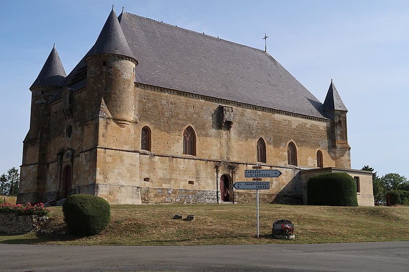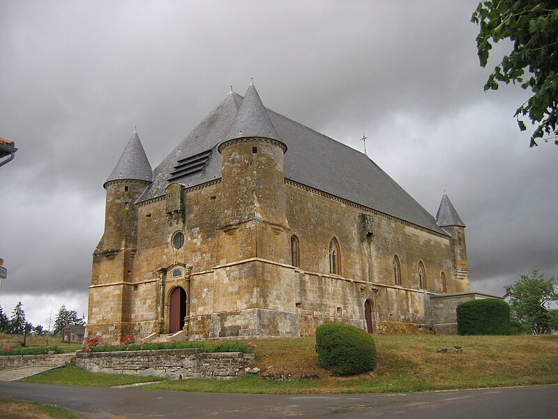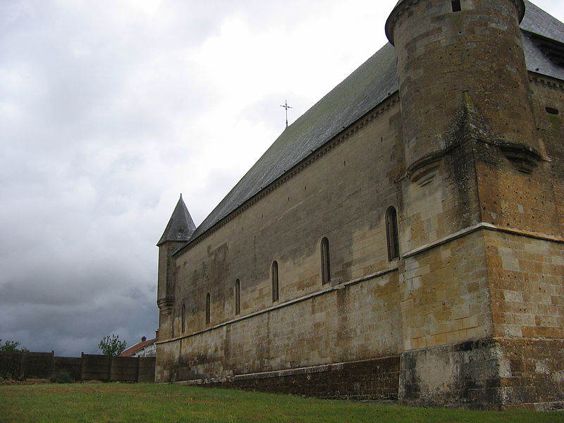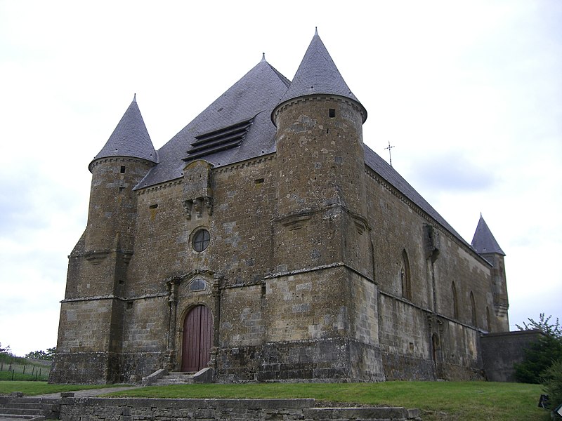 L'église Saint-Juvin, située dans la partie haute de la commune de Saint-Juvin dans les Ardennes, est une église fortifiée du XVIIe siècle, bâtie en une dizaine d'années et présentant un style très homogène. L'absence de clochers et la masse compacte de l'édifice lui confèrent une allure de construction militaire. Son plan est rectangulaire et, à chacun des quatre angles, une tourelle en demi-encorbellement marque la silhouette : aux deux angles occidentaux les tourelles sont carrées à la base puis cylindriques, tandis que les deux autres sont hexagonales. La tourelle méridionale porte un cadran solaire et un grotesque et ne comporte pas de clocher. Les murs, épais de deux mètres, sont percés de meurtrières et les accès sont surmontés de machicoulis ; l'ensemble se caractérise par une sobriété ornementale, limitée notamment à une corniche à modillons sommitale. Certaines baies sont cintrées et d'autres en arcs brisés ; le grand portail est surmonté d'une rosace. À l'intérieur, l'espace est structuré en trois nefs voûtées dont les croisées d'ogives retombent sur des piles cylindriques à abaques carrés. L'église renferme un bénitier en fonte du XVe siècle et une statue en bois du XVIe siècle représentant saint Juvin en berger, un groupe de porcs figurant à ses pieds. Construite de 1614 à 1624 par les habitants sous l'impulsion du curé Didier Mauclerc et de Claude de Joyeuse, comte de Grandpré, elle fait suite à un oratoire antérieur et à des décennies troublées par les guerres de religion puis par la Fronde. L'édifice a été consacré le 14 août 1648. Lors de la Première Guerre mondiale, en octobre 1918, la 1re armée américaine attaque la ligne fortifiée Kriemhilde Stellung dans le cadre de l'offensive Meuse-Argonne ; les bombardements et l'explosion d'un dépôt de munitions américaines détruisent les trois quarts du village, dont l'église. Classée au titre des monuments historiques en 1920, elle a été reconstruite à l'identique entre 1931 et 1935, sa charpente étant remplacée par une ossature en béton armé.