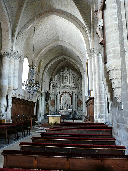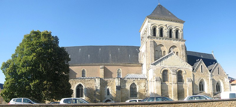 L'église Saint-Laon est une église catholique située à Thouars, dans le département des Deux-Sèvres ; elle est l'ancienne église abbatiale de l'abbaye Saint-Laon. L'abbaye, fondée en 1021 par Achard, seigneur de Saint-Laon-sur-Dive, abritait une relique, le bras momifié de saint Laon (Laud de Coutances). À l'origine placée sous le double vocable de Notre-Dame et Saint-Laon, l'église dépendait de l'évêché de Poitiers jusqu'en 1096. Un acte du 7 mars 1096 la rattache à une abbaye bénédictine saumuroise ; en 1107 les chanoines deviennent autonomes et adoptent la règle augustinienne. L'abbaye prospère ensuite grâce aux dons des vicomtes de Thouars et voit le nombre de chanoines passer à douze. L'église elle‑même a été construite au XIIe siècle sur l'emplacement d'une chapelle du Xe ou XIe siècle où avaient été déposées les reliques. Du bâtiment primitif subsistent essentiellement le clocher et le pignon sud ; le reste a été sensiblement remanié au XVe siècle. Au XVe siècle, le chœur probablement demi‑circulaire est remplacé par une travée à chevet droit, une travée et une nouvelle façade sont ajoutées à l'ouest et une chapelle latérale est élevée au nord. Sauf au sanctuaire qui conserve son berceau, les voûtes primitives ont été remplacées par des voûtes d'arêtes et, dans d'autres parties, par des croisées d'ogives gothiques. Peu avant 1445, Marguerite d'Écosse fit entreprendre la chapelle du Saint‑Sépulcre accolée au chœur pour y être inhumée ; elle y repose à partir de 1479. Au XVe siècle on remplace la charpente apparente par des voûtes en pierre et on installe une flèche. Au XIXe siècle deux travées latérales sont bâties au sud. Les chapiteaux et les culots sont sculptés et le chevet carré était doté d'une grande verrière masquée par un retable du XVIIe siècle. Le fonctionnement de l'abbaye se dégrade : les moines quittent la vie communautaire et l'abbaye est pillée en 1569 par des protestants. À partir de 1667, les chanoines de la Congrégation de France (Génovéfains) reprennent l'abbaye, rétablissent la discipline et procèdent à des travaux intérieurs et au renouvellement du mobilier. Le 10 décembre 1711, un ouragan provoque l'effondrement de la flèche du clocher et cause un décès ; d'autres tempêtes en 1817 et 1847 endommagent encore l'édifice. À la Révolution française l'abbaye disparaît ; l'église devient paroissiale tandis que les bâtiments conventuels sont détruits ou réaffectés, notamment en collège puis en mairie. Sur le plan de la protection, le clocher est classé monument historique en 1840 ; des restaurations non autorisées entre 1863 et 1877 entraînent la perte du classement de l'église en 1879, le clocher conservant son statut. L'édifice est inscrit à l'Inventaire supplémentaire des monuments historiques le 22 octobre 1926, puis classé le 3 février 1988, l'arrêté de 1988 abrogeant l'inscription précédente ; des travaux ont eu lieu au milieu des années 1990. D'un point de vue architectural, l'église résulte d'un mélange d'époques entre le XIe et le XVe siècle et utilise divers matériaux — tuffeau, grison, pierre marbrière — qui permettent de distinguer ses phases de construction. Le clocher roman du XIIe siècle constitue l'un des éléments les plus remarquables de l'édifice. L'église actuelle comprend trois travées voûtées et une quatrième travée ouvrant sur les trois travées du chœur ; il ne subsiste que quelques vestiges de l'édifice primitif au niveau de la nef et de la façade ouest. Parmi les éléments intérieurs notables figurent un retable baroque, la mise au tombeau de la chapelle de Marguerite d'Écosse, son caveau et des peintures de fleurs de lys sur un mur de la chapelle. La partie nord‑est de l'église est accolée aux bâtiments de la mairie, au cœur du centre‑ville de Thouars.