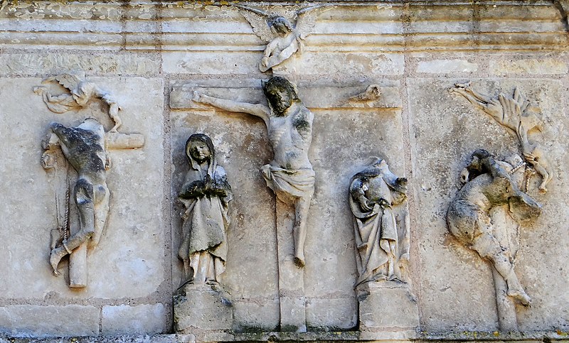 Création du portail latéral nord avec sculptures représentant la Crucifixion.