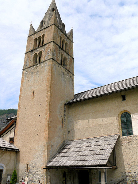 La paroisse d'Arvieux est attestée dès 1212, mais l'église Saint-Laurent actuelle date de la fin du XVe siècle ou du début du XVIe. Très mutilée pendant les guerres de Religion, elle a fait l'objet de restaurations au XVIIe siècle. Le portail d'origine, daté du XVIe siècle, a été remonté en 1683, date portée au-dessus. En 1685, date gravée sur un chapiteau, la nef a été allongée d'une travée, sa voûte refaite et les chapelles latérales nord condamnées. Entre 1822 et 1832 a été construite la chapelle Saint-Joseph pour la confrérie des pénitents. En 1854, Scalle a repeint la voûte du chœur. La toiture a été refaite en bardeaux de mélèze en 1931. L'église Saint-Laurent, située à Arvieux (Hautes-Alpes), est classée au titre des monuments historiques depuis 1914.