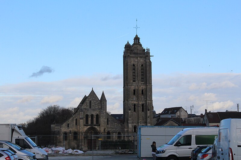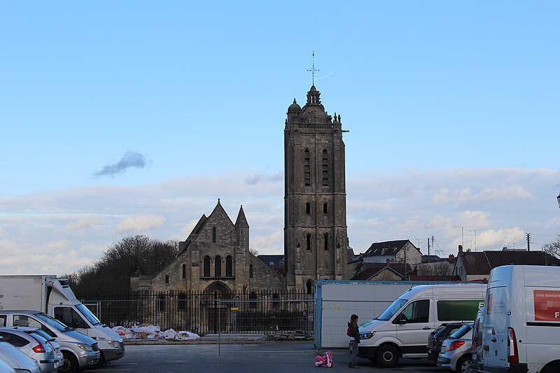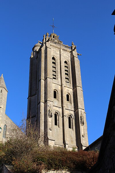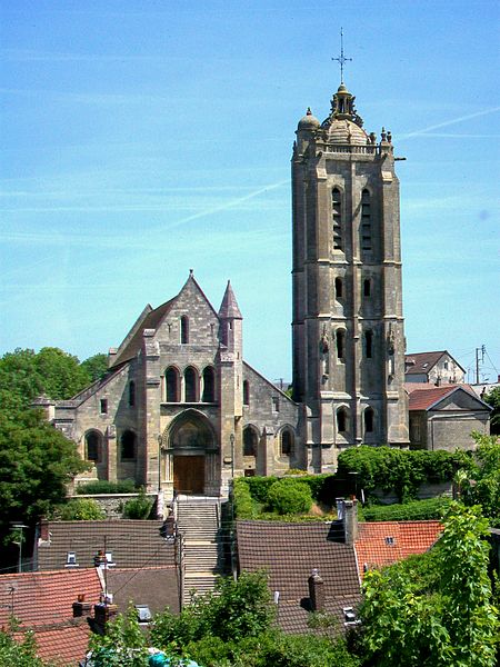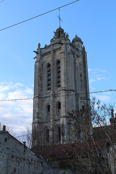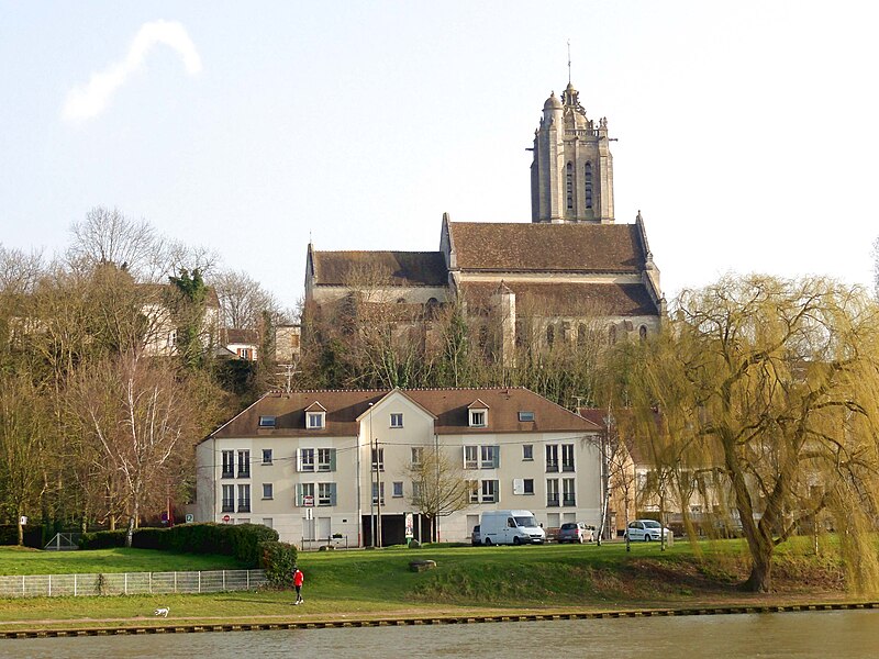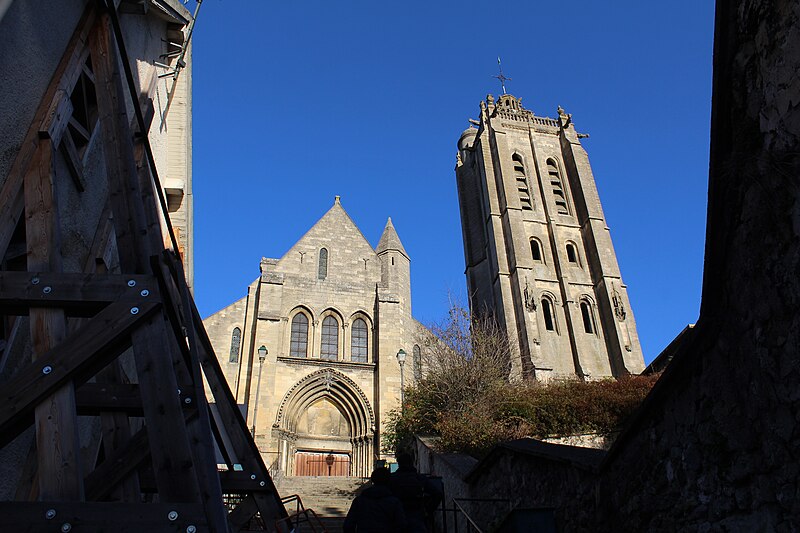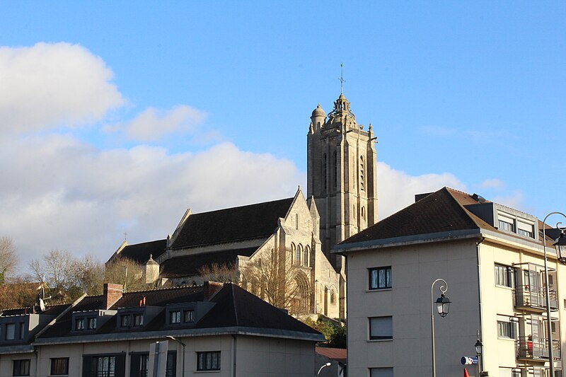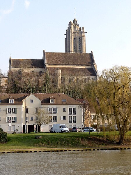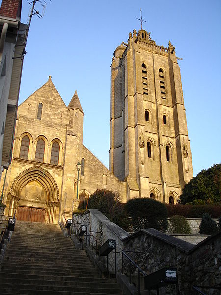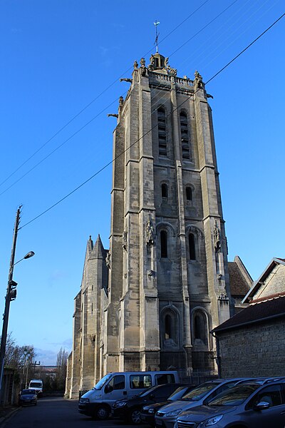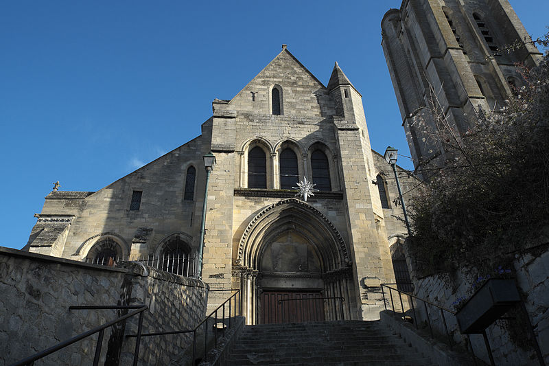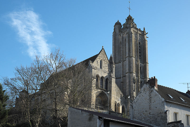 Bâtie à l’extrémité nord du centre-ville historique, sur un des points les plus élevés dominant la vallée de l’Oise, l’église ne s’ouvre sur la voie publique que par sa façade occidentale ; il est donc impossible de faire le tour de l’édifice et le chœur reste invisible depuis l’espace public. La première mention de l’église remonte à 1170, mais son authenticité est incertaine et aucun document de construction n’a été conservé. La partie la plus ancienne, dont la cinquième travée du bas-côté nord qui a servi de base à un précédent clocher arasé en 1778, peut être datée d’environ 1130 ; le chœur appartient probablement au troisième quart du XIIe siècle. Le reste de l’édifice relève du premier tiers du XIIIe siècle, la sacristie au sud du chœur ayant été ajoutée au XIVe siècle et le clocher-tour devant la première travée du bas-côté sud datant du XVIe siècle. On ignore si l’église de la seconde moitié du XIIe siècle fut détruite par un incendie ou resta inachevée.
