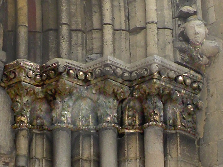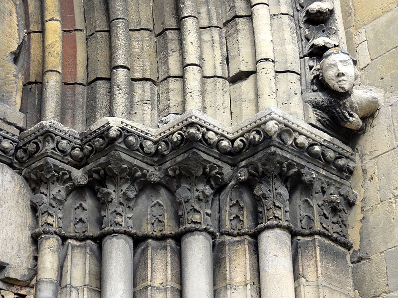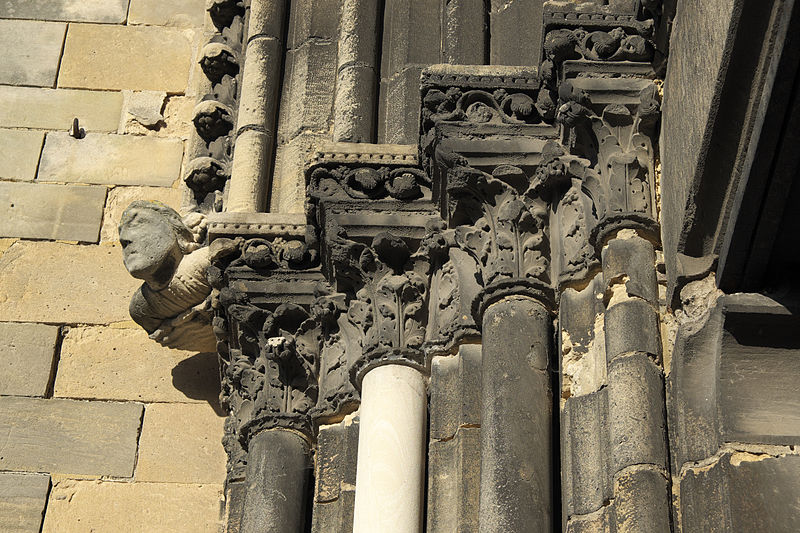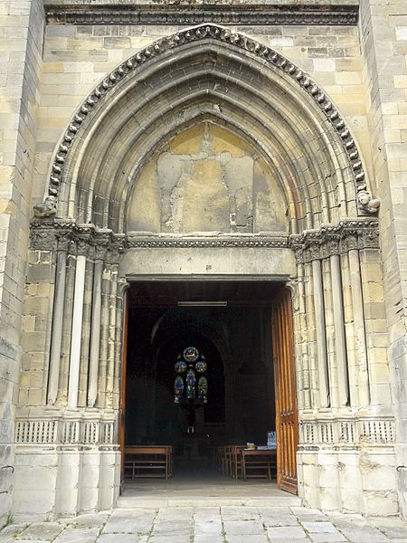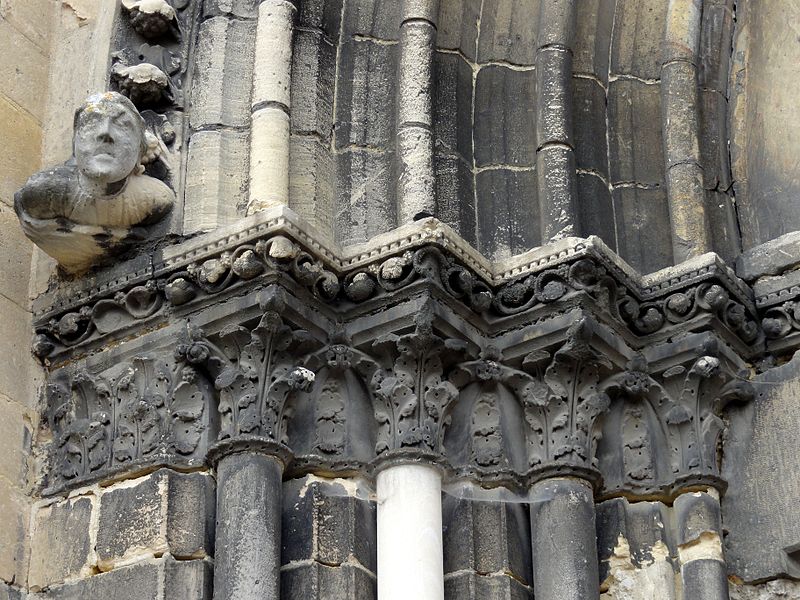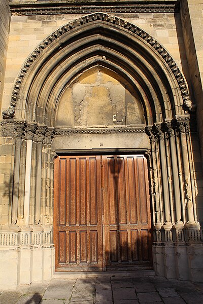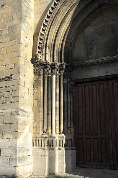 À l’intérieur, la nef, d’une grande élégance, est cependant très sombre : la lumière provient essentiellement des baies occidentales, en grande partie bouchées par l’orgue de tribune, et de manière indirecte du chœur et de ses bas-côtés ; quatre travées du bas-côté sud sont dépourvues de fenêtres en raison de la sacristie et du clocher. Les grandes arcades brisées présentent un profil de méplat entre deux tores et retombent, par l’intermédiaire de tailloirs octogonaux, sur des chapiteaux à crochets qui prennent appui sur des colonnes en tambour ; la sculpture y est plus développée au sud qu’au nord. Les tribunes, jadis ouvertes sur les combles des bas-côtés, furent bouchées ou transformées en triforium ; ce dernier, articulé en trois baies par travée sous un arc de décharge, a été utilisé comme support lors de la mise en place des voûtes de 1878 et a été largement remanié par les restaurations, plusieurs chapiteaux ayant été refaits.