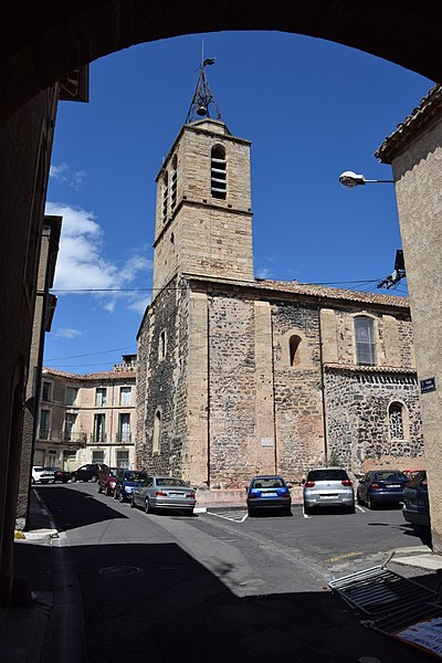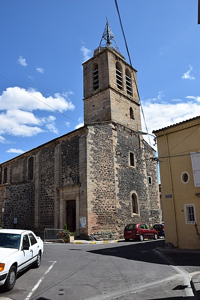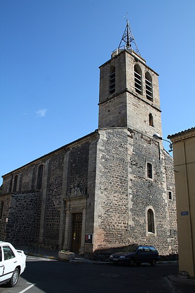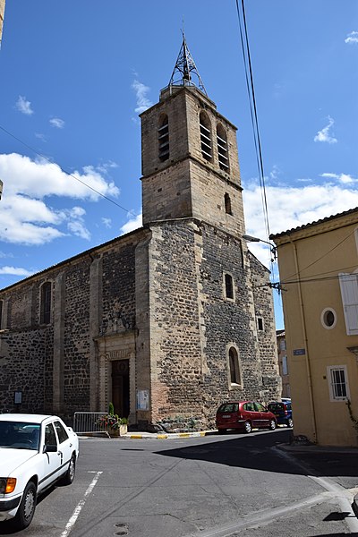 À la fin du XIe siècle, Bérenger Ier, évêque d'Agde, confia la relève de l'église à Dieudonné, abbé de Saint-Thibéry, en vue de sa reconstruction. Les plus anciennes parties de l'édifice, le chœur et l'abside polygonale, datent vraisemblablement de cette période. Divers litiges de propriété retardèrent la poursuite des travaux et expliquent l'achèvement tardif de la grande nef ainsi que l'économie des moyens employés pour son appareil, sa couverture et sa décoration. Malgré son caractère encore roman, le bâtiment ne semble pas avoir été achevé avant le second quart du XIIIe siècle. Les chapelles latérales ont été édifiées bien plus tard. Le portail d'entrée, à refends et fronton orné de boules, appartient probablement à la fin du XVIIe ou au début du XVIIIe siècle. La réfection du clocher, au XIXe siècle, a remplacé sa partie octogonale par une flèche métallique et repris les parements extérieurs de la base. Quelques baies à linteaux posés sur corbeaux et, à l'intérieur, les trompes d'angle attestent toutefois l'ancienneté de l'édifice.