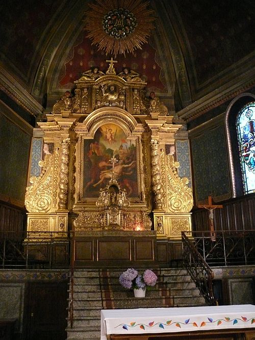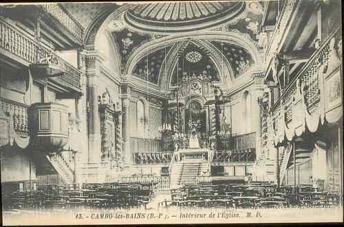 L'église Saint-Laurent, située dans le bourg de Cambo-les-Bains (Pyrénées-Atlantiques), présente une silhouette extérieure plutôt modeste et un intérieur très riche. L'édifice, qui date de la première moitié du XVIIe siècle et remplace une église du XIIe siècle, adopte un plan simple : un clocher implanté au-dessus d'un porche hors-œuvre et une nef unique à chevet polygonal. Un porche saillant s'appuie à l'angle sud-ouest ; il est situé sous une salle qui servait autrefois de lieu de réunion aux jurats et aux chefs de famille et contient une Pietà, un petit oratoire et une statue de saint Léon du XVIIIe siècle, dite offerte par la reine Marie-Anne de Neubourg. Le clocher octogonal actuel, avec une haute flèche, a remplacé un clocher triangulaire à la fin du XIXe siècle. À l'intérieur, trois niveaux de tribunes en bois sculpté encadrent la nef ; ces galeries étaient traditionnellement réservées aux hommes jusque dans les années 1960. Le chœur est surélevé et pavé de mosaïques. L'édifice abrite un remarquable ensemble tabernacle-retable et des statues de qualité : le tableau central représentant le Martyre de saint Laurent, inspiré d'Eustache Lesueur, date du XVIIe siècle et fait l'objet d'une reconnaissance au titre des monuments historiques. Le retable baroque, œuvre de Jean-Baptiste Dartiguecave, est orné de colonnes torsadées, de pampres et de fruits sculptés sous une corniche denticulée surmontée d'une croix entourée d'anges ; Dieu le Père y est figuré bénissant de la main, et le tout est flanqué de rinceaux latéraux terminés par des têtes de jeunes hommes. Le décor peint des voûtes, sur fond ocre rouge, date de 1904 et comprend notamment une allégorie du Saint-Esprit sous forme de colombe. Des céramiques florentines offertes par Edmond Rostand pour la première communion de son fils Jean complètent le décor. Deux vitraux datés de 1868, signés Gustave Dagran, représentent saint Michel Garicoïts, sainte Thérèse d'Avila, la Nativité et la Descente de la Croix ; les autres verrières sont de la fin du XIXe siècle et l'ensemble des vitraux a été restauré en 2019. Réputée pour son acoustique, l'église accueille régulièrement des concerts, notamment de chœurs basques. L'édifice dépend pour le culte de la paroisse Saint Michel Garicoïts du diocèse de Bayonne, Lescar et Oloron et a été inscrit aux monuments historiques en 2012. Il a fait l'objet d'une restauration entre 2017 et 2019.