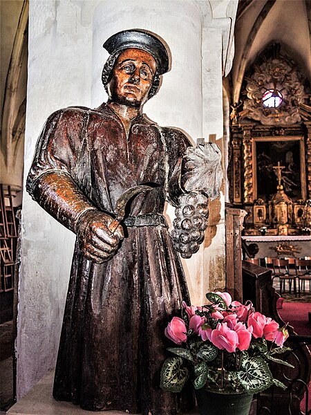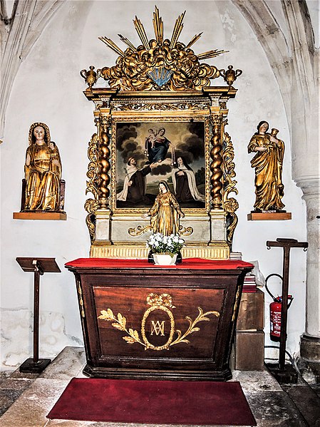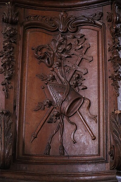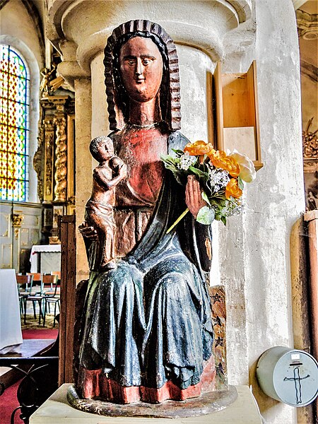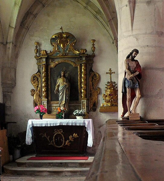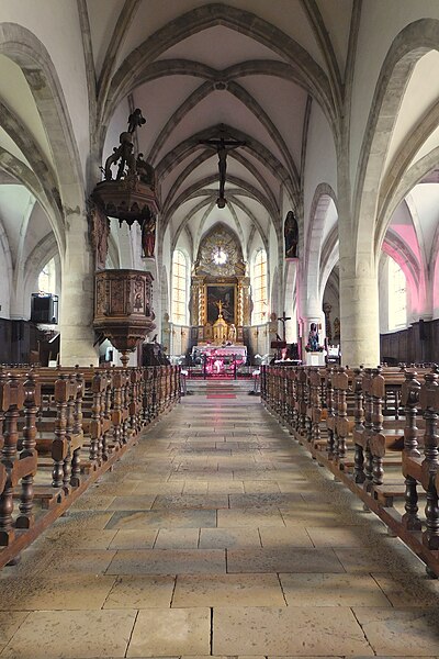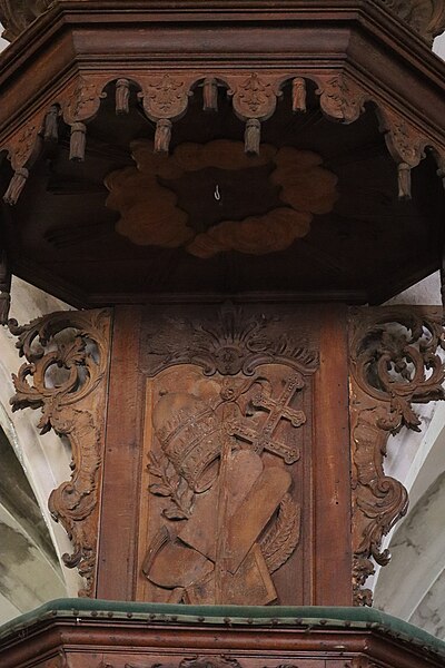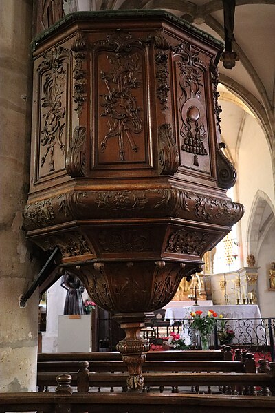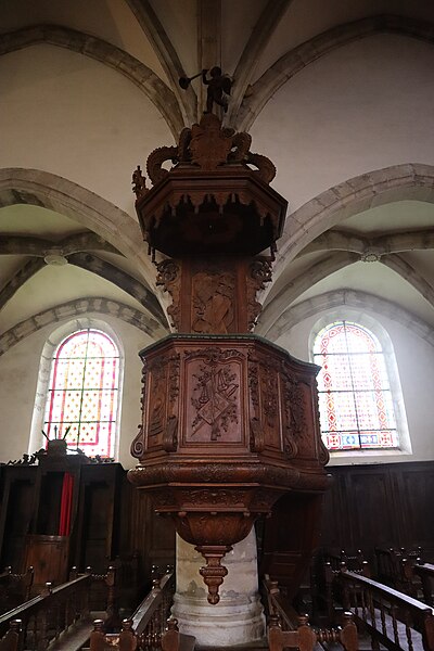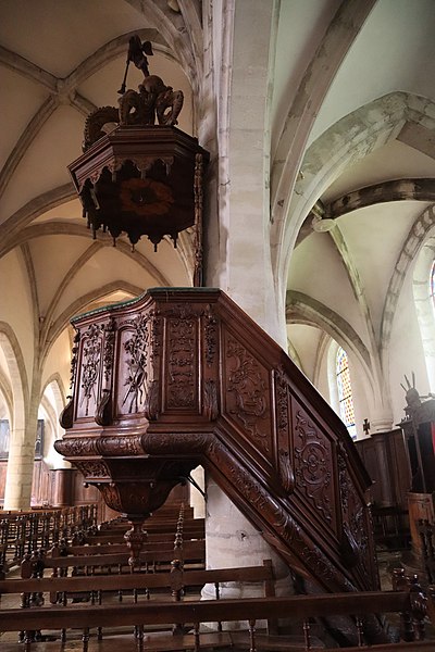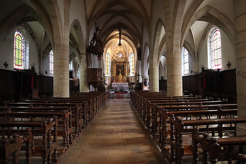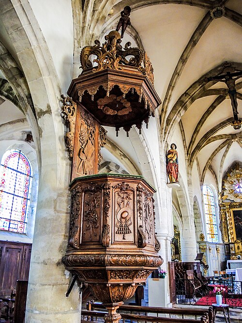 Le mobilier de l'église comporte plusieurs éléments protégés : le retable du maître-autel, daté du XVIIe siècle, et la chaire à prêcher du XVIIe siècle, richement sculptée (symboles de la papauté, feuilles d'acanthe, clés) et provenant, selon la tradition, de l'église Saint-Pierre détruite à la Révolution, sont classés à titre d'objet en 1916. Parmi les tableaux classés en 1982 figurent une Adoration des mages du XVIe siècle, une composition représentant saint Blaise, saint Grégoire et sainte Agathe, et une Notre-Dame des sept douleurs du XVIe siècle. Sont également protégées des sculptures : les statues du Christ en croix, de la Vierge et de saint Jean, formant le calvaire et datant du XVe siècle (classées en 1916), ainsi qu'une statue-reliquaire de la Vierge à l'Enfant datée de 1669 et signée de l'orfèvre Jean-Baptiste Thouverey (classée en 1901). Divers accessoires liturgiques — calices, plats à quêter, ostensoirs — sont inscrits à titre d'objet en 2005.