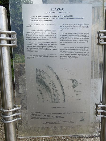 L'église Saint-Laurent, située à Plassac en Charente-Maritime, est classée au titre des monuments historiques (classée en 1910, inscrite en 1964). Orientée, elle présente un plan rectangulaire à nef unique se terminant par une abside semi-circulaire voûtée en cul-de-four et éclairée par quatre fenêtres à colonnettes. La nef est couverte d'un berceau en plâtre. Sur le côté nord, une petite chapelle accole la nef et forme un bras de transept. Une chapelle mortuaire dédiée à la Vierge, construite par le marquis de Montazet alors comte de Plassac, est également accolée à la nef à la fin du XVIIIe siècle. Au-dessus du carré du transept s'élève une coupole sur pendentifs ornée, à sa base, d'un cordon de cannelures anguleuses. La façade occidentale est ornée d'arcades polylobées et le portail, typique du XIe siècle, est décoré de motifs en zigzag, de têtes grimaçantes et d'étoiles. Le clocher, reconstruit et implanté sur le transept, est quadrangulaire, percé de quatre fenêtres en plein cintre et surmonté d'une charpente formant une flèche recouverte de tuiles plates. L'édifice fut en partie ruiné pendant les guerres de Religion et restauré dans la seconde moitié du XIXe siècle.