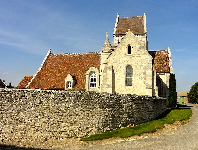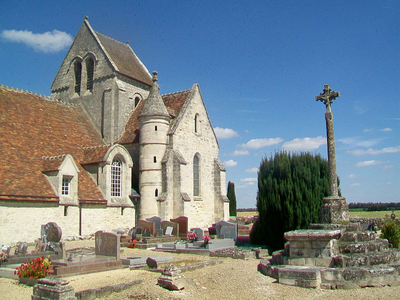 L’église occupe la limite Est du village, rue de l’Église, au sein de l’enclos du cimetière qui s’étend principalement au sud ; on y accède depuis la rue par quelques marches. En approchant du portail, la croix du cimetière, inscrite aux monuments historiques, attire l’attention : le Christ est mutilé, le revers porte la figure d’un vieillard barbu, les branches sont reliées par des volutes, l’ensemble repose sur un haut fût monolithique posé sur une base octogonale et un piédestal circulaire intégrant un autel de pierre refait. Le chevet donne sur un chemin rural et l’église se détache librement de tout bâti voisin ; son altitude est de 101,5 m.