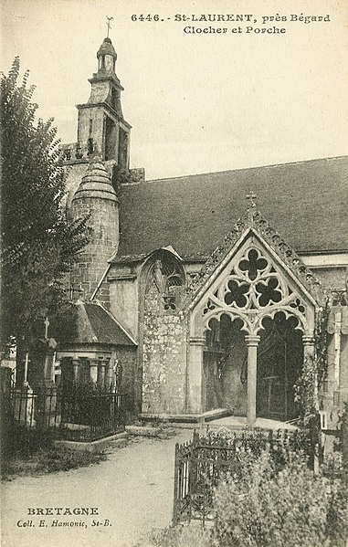 L’église Saint-Laurent est un édifice religieux de la commune de Saint-Laurent, dans les Côtes-d'Armor, en Bretagne. La plus ancienne appellation connue de la paroisse, Lanlouran (fin du XIVe siècle), associe le breton "lan" (ermitage) au terme "louran", interprété par les érudits comme désignant un saint breton inconnu. Vers 1550 apparaît la dénomination Saint Laurans Lanlauran, sans doute par attraction patronymique vers saint Laurent, diacre et martyr de Rome, et le nom se contracte en Saint Laurent autour de 1725. Les commandeurs du Palacret, hospitaliers de l’ordre de Saint-Jean de Jérusalem, sont cités comme fondateurs et seigneurs spirituels et temporels de l’église, titulaires du droit de présentation du recteur ; on ignore si une chapelle préexistait au site avant l’implantation des Hospitaliers. Plusieurs éléments témoignent de cette origine : la pierre tombale du commandeur Pierre de Keramborgne (décédé en 1449), déplacée au XIXe siècle de la chapelle du Palacret au cœur de l’église, ainsi que les armes de René de Saint-Offange (d’azur au chevron d’argent, accompagné de trois molettes du même) et de Jacques de Jalesnes (d’argent à trois quintefeuilles de gueules, percées d’or) insérées dans l’enceinte paroissiale ; les vitraux ayant beaucoup souffert, les armes qu’ils portaient ont disparu. L’édifice a été remanié à plusieurs reprises ; les premiers travaux, datés de la fin du XIVe et du début du XVe siècle, concernent le porche sud, la nef et le chevet. Le porche sud s’ouvre dans la deuxième travée de la nef sous deux arcs en plein cintre ornés chacun de cinq lobes, séparés par une colonne cylindrique, et trois quadrilobes s’inscrivent dans le pignon qui surmonte le porche. Le pignon ouest, autrefois couronné d’un petit campanile en mauvais état, fut remplacé en 1649-1650 par un clocher-mur de type lannionnais dit "Philippe Beaumanoir", composé de deux baies rectangulaires surmontées d’une troisième baie et d’un petit clocheton en forme de dôme. Au nord, un collatéral de trois travées, qui s’élargit en aile dans sa dernière travée, a été reconstruit entre 1895 et 1897. Dans l’aile nord se trouve la chapelle du Rosaire ; son autel comporte un bas-relief en albâtre daté du XVIe siècle attribué à l’atelier anglais de Nottingham, élément classé. Le retable du maître-autel, également classé et daté du XVIIe siècle, est surmonté d’un fronton triangulaire où figurent des rayons de soleil et un soleil doré d’où émerge la tête symbolique de Dieu le Père ; sous ce triangle apparaît la colombe du Saint-Esprit, le tout reposant sur deux colonnes cylindriques terminées par des chapiteaux corinthiens. Le tabernacle est coiffé d’un pélican nourrissant ses petits, symbole du Christ, et la toile encadrée dans le retable est une œuvre de Loyer Aîné datée de 1841. La nef est couverte de lambris en plein cintre peints entre 1859 et 1865 par la famille Le Loyer, originaire d’Étables, et représente des scènes de la vie des saints, de la vie du Christ et de l’Ancien Testament ; les légendes de ces scènes sont rédigées en breton. Côté sud figurent notamment les rois mages offrant des présents à l’enfant Jésus, la lapidation de saint Étienne, la vie de sainte Geneviève, la vision de Balthazar, le sacrifice d’Isaac et l’Éden ; côté nord se lisent Joseph reconnu par ses frères, Suzanne innocentée, la bonté de saint Vincent de Paul, le martyre de saint Laurent et l’ascension de Jésus. Entre ces scènes sont représentés les évangélistes Jean, Luc et Marc, ainsi que des figures comme saint François-Xavier, saint Augustin, Moïse, Adam, Noé, le roi David, saint Grégoire et sainte Thérèse. Le lambris de l’aile du Rosaire a été peint en 1869 par M. Herlido. L’église abrite encore plusieurs statues, dont saint Laurent (saint Lorans) et la Sainte Vierge (itron Varia St Lorans) encadrant le retable, ainsi qu’un Christ en croix en bois polychrome datant du XVe siècle.
