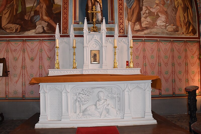 L'église de Saint-Laurent présente une abside romane datée de la seconde moitié du XIIe siècle. Le clocher, de style gothique, est parfois attribué au XIIIe siècle et parfois au XIVe siècle, le portail étant lui daté du XIVe siècle. La flèche appartient au XVIe siècle. Le bas-côté semble remonter au XVIIIe siècle. La nef et les voûtes d'arête sont modernes ; la nef est datée de la fin du XIXe siècle et a fait l'objet de restaurations.