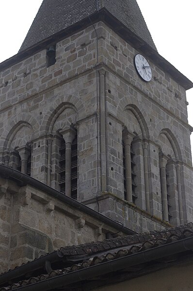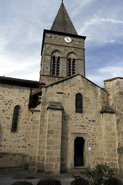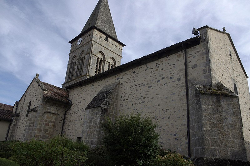 L'église Saint-Laurent comprenait une prévôté et une cure relevant de l'abbé de Saint-Martial de Limoges. La partie orientale — abside, clocher et transept — date du XIIe siècle, tandis que la nef appartient au XVe siècle. Sur plan basilical, une nef unique aboutit à un transept coiffé d'une coupole sur pendentifs à la croisée. Le chœur se termine par un hémicycle voûté en cul-de-four et la façade sud s'ouvre par un portail du XVe siècle.
