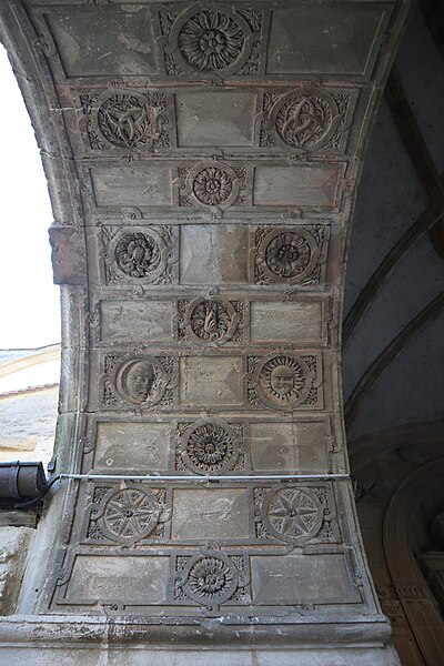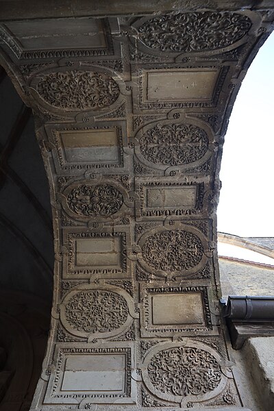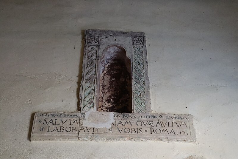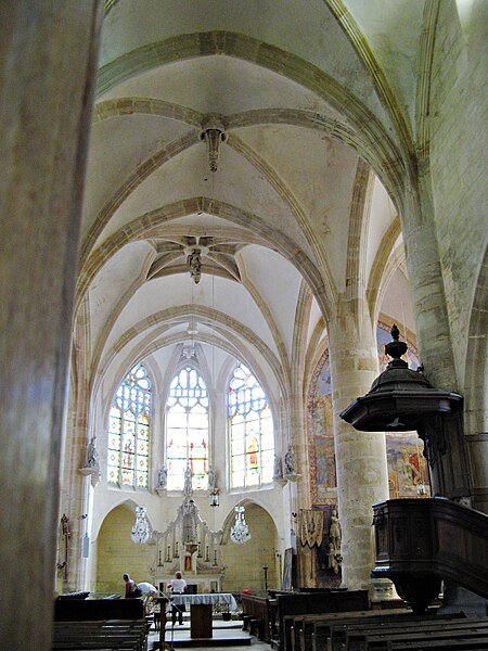 Le mobilier comprend un ensemble de statues du XVIe siècle : une statue identifiée comme Saint Syre (identification incertaine) présentant des traces de badigeon, une Vierge à l'Enfant en bois avec traces de polychromie, une Sainte Anne et un Saint Jean en bois, ainsi qu'une Sainte Élisabeth, peut‑être de Thuringe, en calcaire avec traces de badigeon. Parmi les tableaux se trouvent une Descente de Croix, des représentations de saint Laurent, saint Pierre et saint Étienne datées du XVIIe siècle et anciennement placées en chapelle, ainsi qu'un Saint Nicolas peint par Georges en 1811.