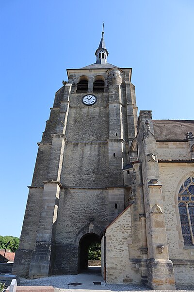 D'après Courtalon, l'église portait autrefois le double vocable de Jean‑le‑Baptiste et Laurent ; la paroisse dépendait du doyenné de Brienne et relevait de l'entière collation de l'évêque. Reconstruite durant la seconde moitié du XVIe siècle, elle aurait dû être plus grande. L'édifice est classé au titre des monuments historiques depuis 1914 ; sont notamment mentionnés l'église elle‑même, le clocher, une gargouille sur la tour, la porte ouest (1578), la nef et le transept sud.