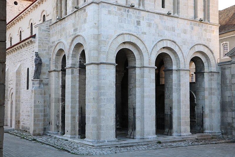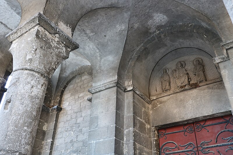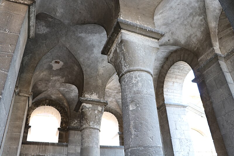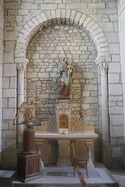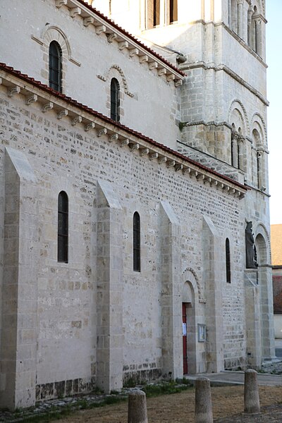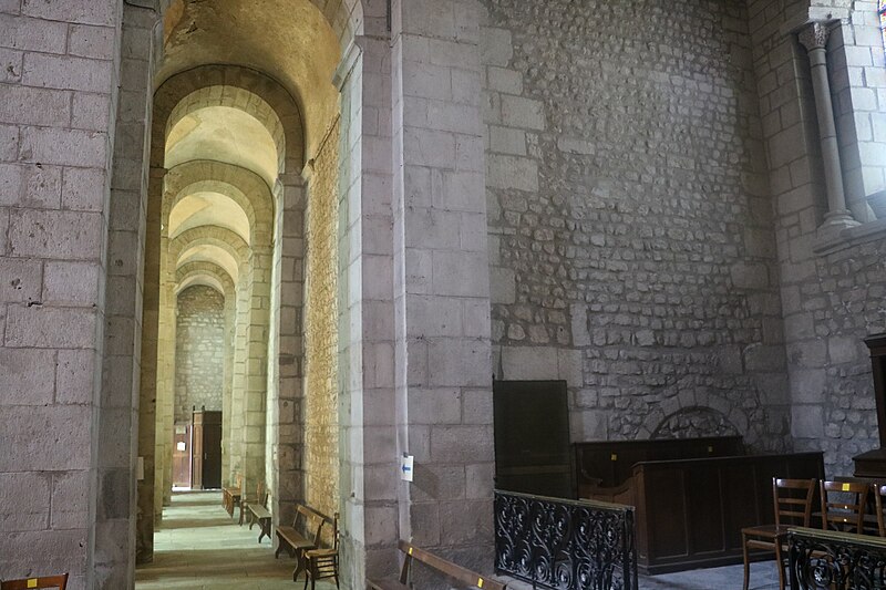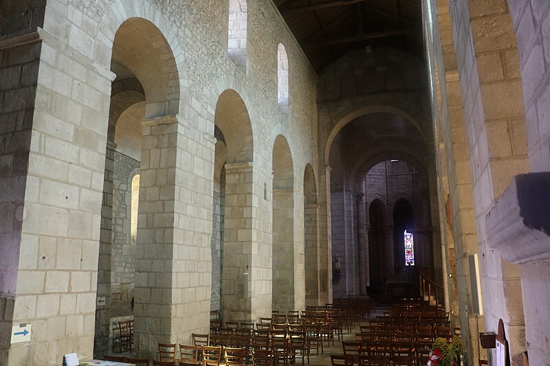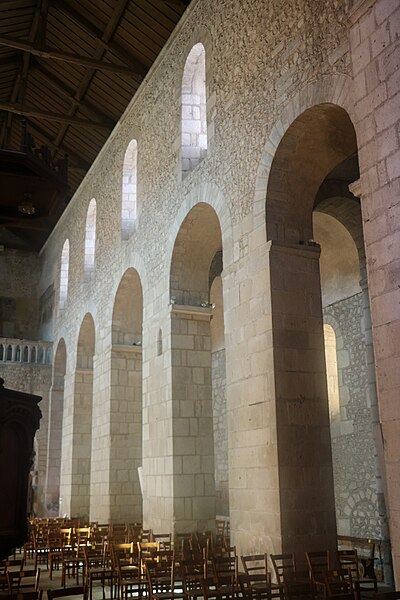 La nef actuelle repose sur l'emplacement de l'église construite entre 961 et 1025; elle comprend cinq travées rythmées par des piliers rectangulaires sans sculpture et une avant-nef dont la largeur rejoint celle de l'édifice. La nef, datée du XIe siècle, est couverte par une charpente en bois à deux versants. Le bras nord du transept, de la même époque, présente un triplet — deux baies en plein cintre flanquantes d'une baie aveugle en mitre — et l'entrée d'une chapelle bouchée encadrée par des colonnes et chapiteaux du XIe siècle.