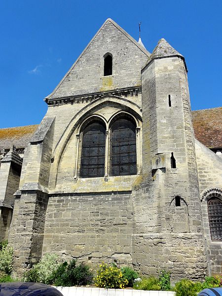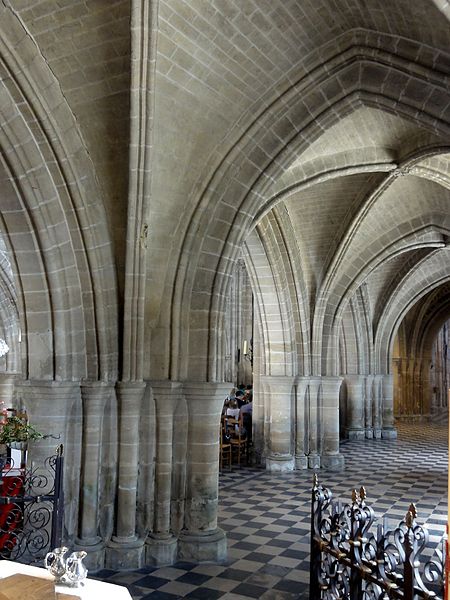 Le transept, sans galerie, a vu ses voûtes reprises après l'effondrement du clocher et présente des piles occidentales anciennes ainsi que des piles refaites à la fin de la période flamboyante; des chapiteaux de style Renaissance y côtoient des éléments flamboyants. Le croisillon sud, peu remanié depuis sa construction autour de 1200, comporte deux travées voûtées d'ogives avec grandes clés sculptées et fines colonnettes, tandis que le croisillon nord, plus simple, offre une rosace et a été complété au XVIe siècle par des chapelles Renaissance, dont l'une sert de confessionnal et l'autre, la chapelle de la Vierge, ouvre largement sur le chœur.