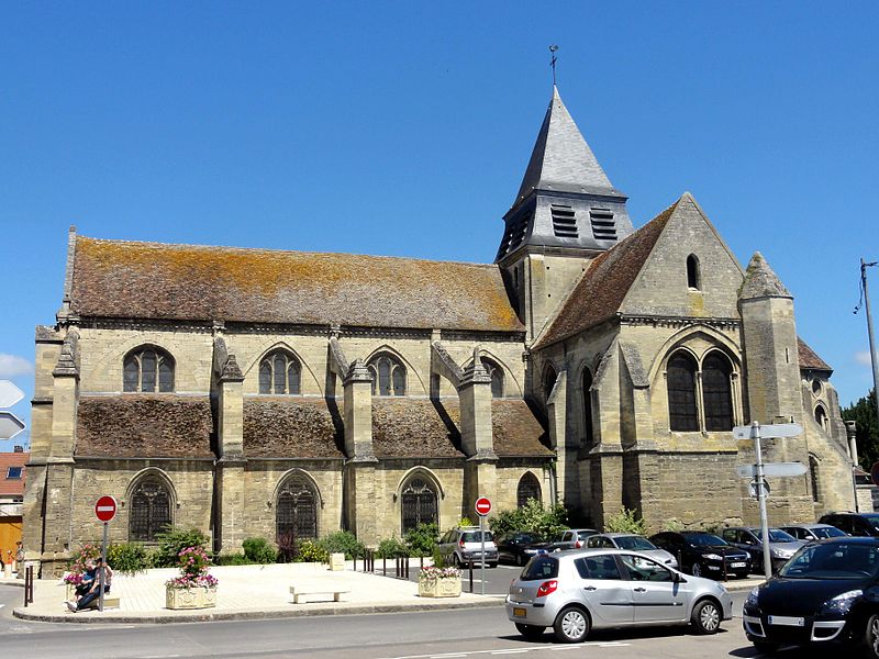Orientée légèrement nord-ouest / sud-est, l'église se compose d'une nef de quatre travées barlongues flanquée de bas-côtés, d'un transept dont chaque croisillon comporte deux travées successives, d'une chapelle orientée à l'est du croisillon sud, d'une extension de deux travées prolongeant le croisillon nord vers l'est, et d'un chœur formé d'une travée droite et d'une travée avec abside à cinq pans, ainsi que d'une absidiole nord à trois pans communicant avec l'extension du croisillon nord et la travée droite du chœur. Le clocher, installé à la croisée du transept, ne dépasse plus le faîtage des toitures et porte une flèche pyramidale en charpente; l'église possède un portail occidental et un portail latéral dans la troisième travée du bas-côté nord.
